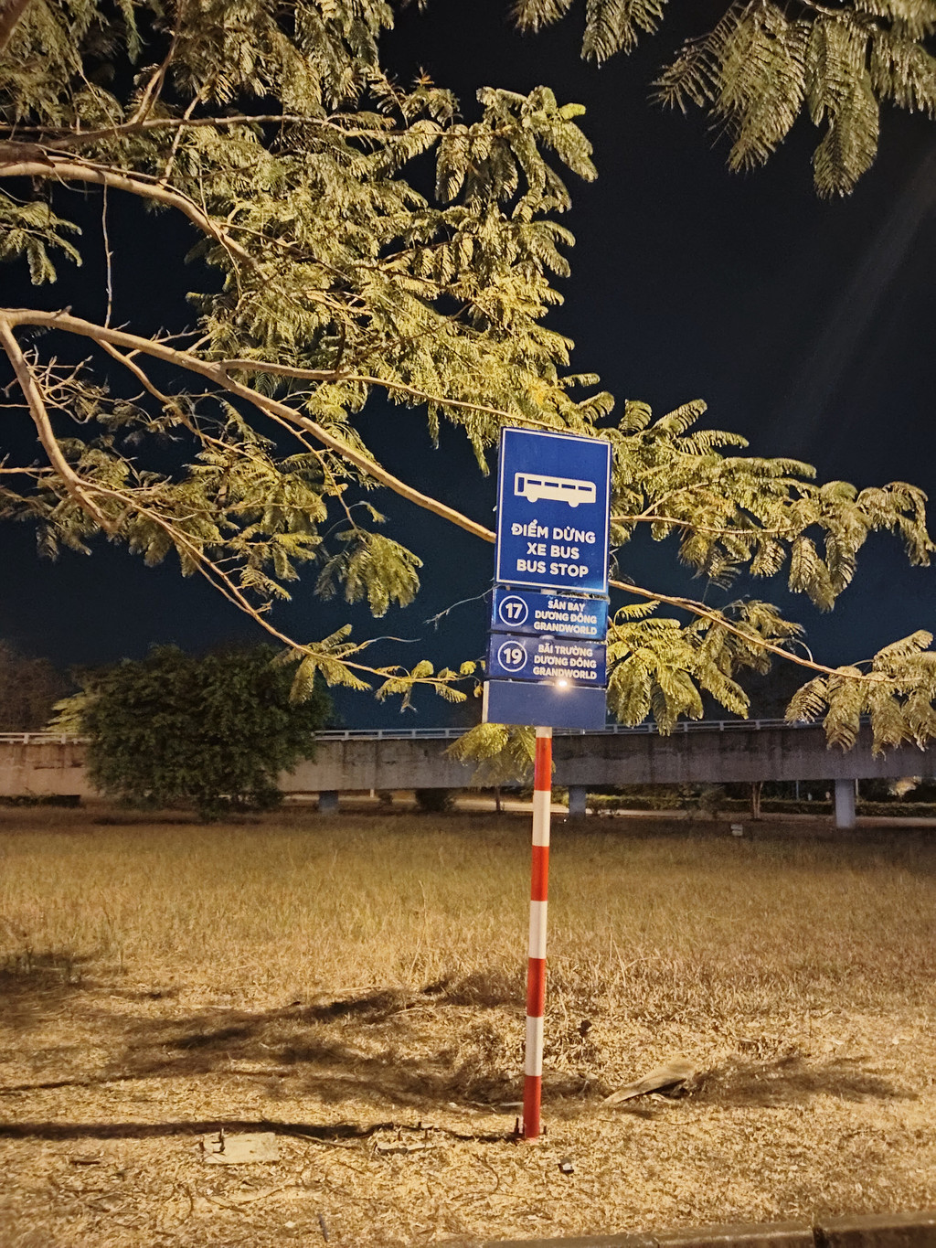 我们的计划是先玩富国岛北部,再中部,再南部,从北到南玩,珍珠集团旗下的vinholiday酒店比较经济实惠,可以坐17或19路直达,都免费,出机场走到最外面停车的地方,再往最右边走,站台就在路边一个很不起眼的地方,天黑光线不好,我们都走到怀疑自己了,还好看到3个老外也往黑灯瞎火的地方走,才看到站牌。坐了差不多一个小时,经过了市区,再到黑乎乎的乡下,等看到了摩天轮才知道快到了,站台有“vinholiday fiesta这站,就在酒店后门,进去就是中间的游泳池。
