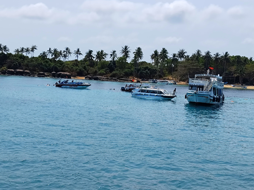 跳岛游是整个行程中最有趣的,毕竟自己去不可能出海,我们选了跳3岛,第一个岛浮潜珊瑚比较远,第二个岛浮潜珊瑚很低,要注意不要被珊瑚割伤,第三个岛是海滩,可以游泳或者参加海上运动,也可以冲澡,2万一个人。