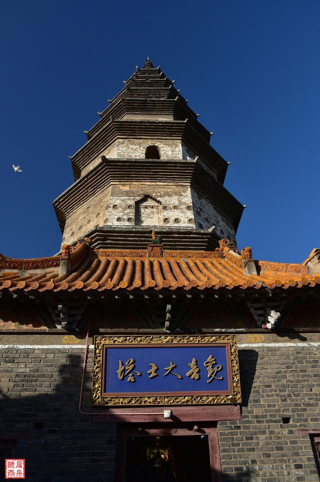 这是一座建造于宋代的千年古塔。观音大士塔为八角九层楼阁式砖石塔,高33米,其前身是东汉末期与寺院同时建立的四方形木构楼阁式塔。现存的塔为宋神宗熙宁元年(1068年)敕建。根据文献记载考证,塔下有地宫,存放有舍利法物。塔的轮廓呈抛物线,远观如圆锥体,状如子弹头。