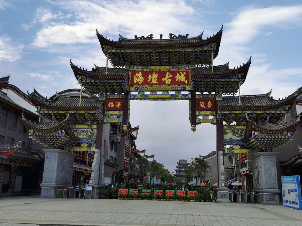 从将军山下来坐公交车回程先经过坛南湾,然后是海坛古城,公交车站就在古城门口附近。古城的建筑群有点像北京的前门大街,两旁都是店铺,以买台湾、福建特色为主,同样人不多。