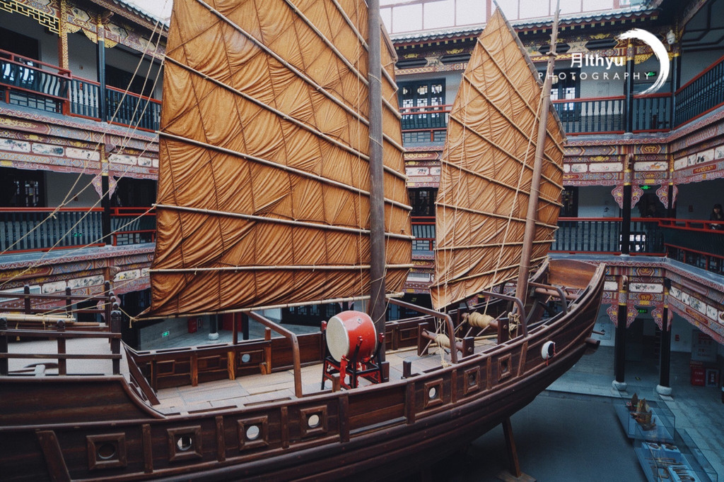 从前厅开始的【清代平潭名将画传】展区、前厅正堂为虎节堂,是总兵官议军务的重要场所,走进内厅则是省内最大的室内战舰模型——13米长的赶缯战船复原船,与原船1:2比例就地建造的赶缯战船复原船,尖底、平头,总长13米,型宽4.5米为清前中期的官方主力战船。