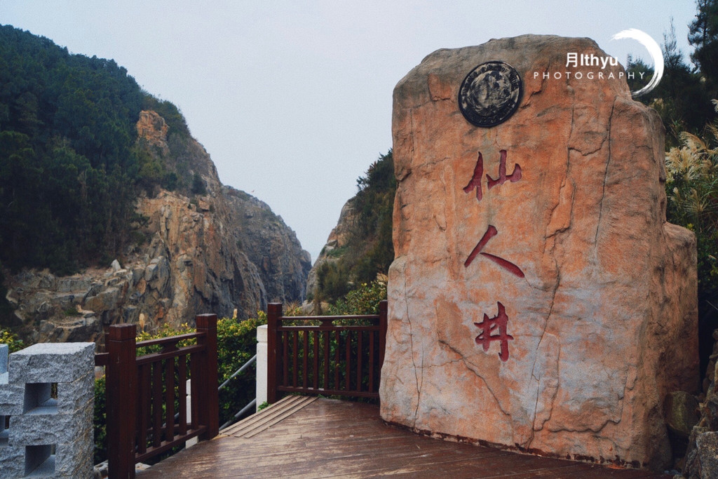 由停车场走到景区约8分钟路程,检票后即到达景点。从景区外就可以看到石山上的三个大字“仙人井”,在这个大字的左侧是一条通往“仙人谷”的下山路,仙人谷,一条临海的小峡谷,谷口面海,气势开阔,碧海扬波。在农历9月的峡谷中,可以听到海风的呼啸,气势磅礴的海浪,即使是天气不给力,但另一种美景也是让人震撼。