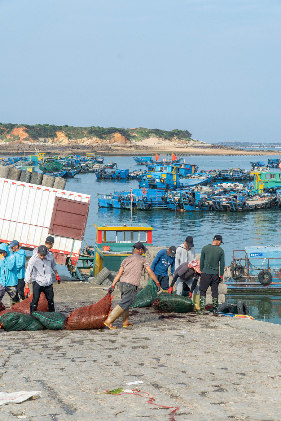 如果你想吃到第一手的肥美海鲜,像这样的海鲜码头也是绝佳选择。到达码头后,我们停下来稍事休整,看看停靠码头的渔船和打渔归来的渔民,打卡拍照。