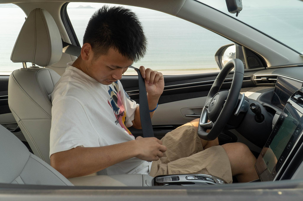 环岛路每到一处,都会设观景台。我们选择停下来,找一处细软的沙滩逐浪,静静感受一下温润的海风拂面的惬意!顺带也让我们这一路的战车——北京现代第五代途胜L——休息一下。