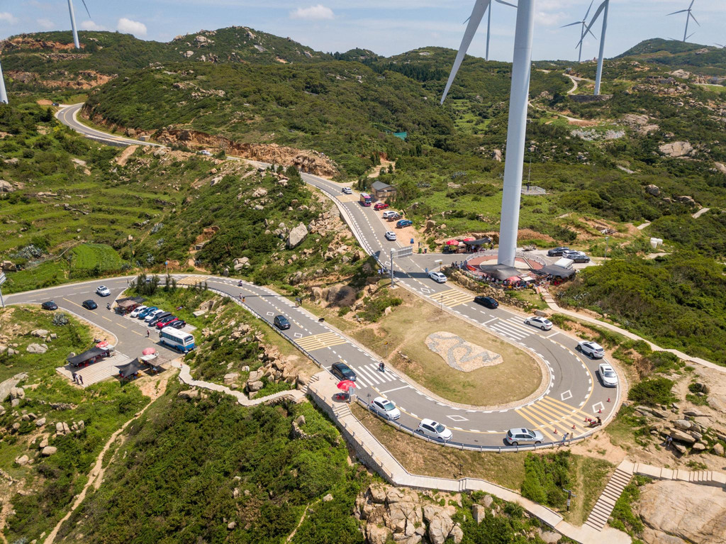 在观景平台上可以远眺平潭海峡公铁两用大桥,也可以凭眺碧海蓝天沙滩风车。这里的打卡点很多:“岚道”、“悬崖栈道”都是不错的选择。