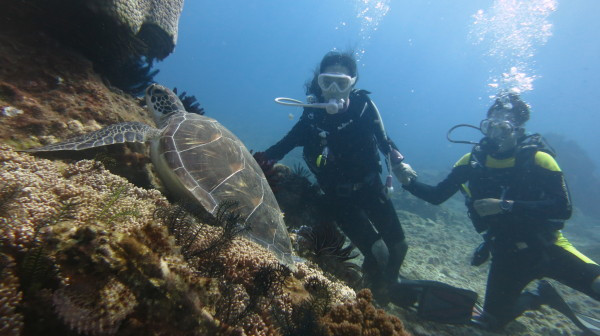 朋友2014年8月在小琉球潜水遇到300岁的龟仙人~~