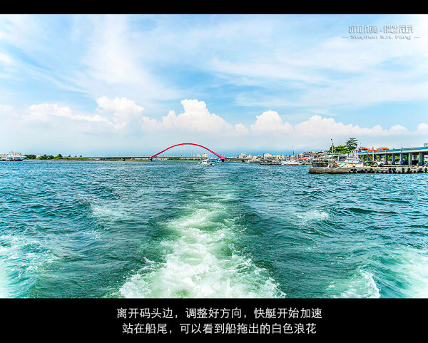 船缓缓出了港口,经过最外面的防波堤进入台湾海峡,然后开始猛力加速,当浪过来的时候,一浮一沉,如果你担心会晕船,记得上船前买个晕船药提前30分钟吃。 (好像候船室有卖晕船药)