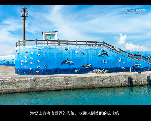 进港了,小琉球目前慢慢转型发展观光,虽然也是渔港,海堤墙也彩绘了海底世界。