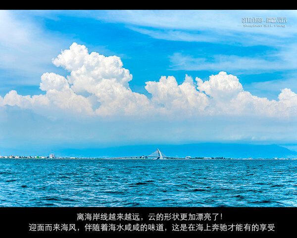 岸上的文明世界离的越来越远了,天空的云非常特别,像大朵的棉花糖~