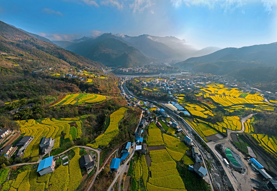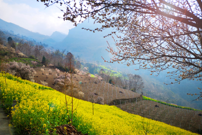 苍穹之上,云卷云舒,花、云、山、水,处处都是春来好风光。