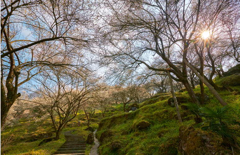 暖阳渐升,梅花正艳,漫山遍野的梅花逐渐开放,让人眼花缭乱;