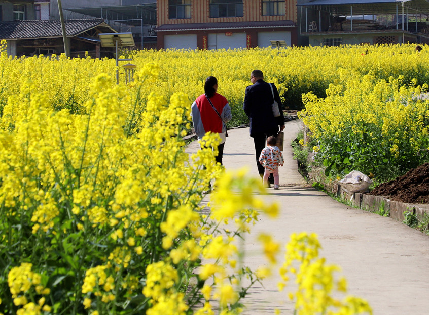 此情此景,像是回到了童年,用金黄菜花别在耳边,嫩黄的花粉沾上脸颊,逗得小伙伴哈哈大笑。