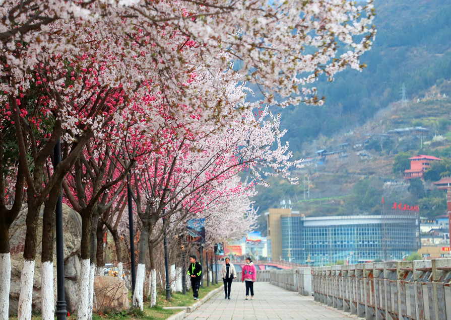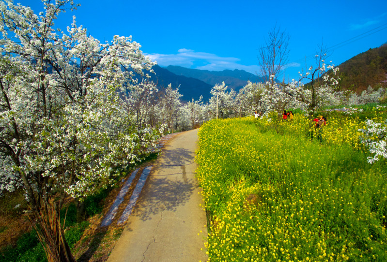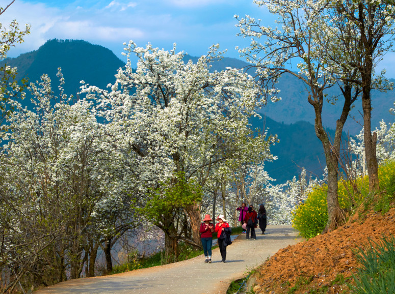 沿途纯白无尘的梨花瓣,是春给平武新年的见面礼;