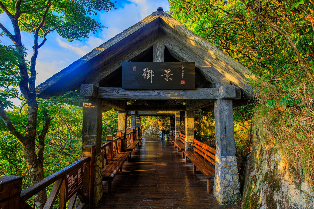 出了索道中转站会经过猴谷,导游说可爱的短尾猴们经常出现在猴谷。想看短尾猴的小伙伴们,记得放慢脚步,说不定一个转头就看见它们在你旁边的树上玩耍。可惜我们一行人都急着赶路去看日落,只闻猴声不见其踪。