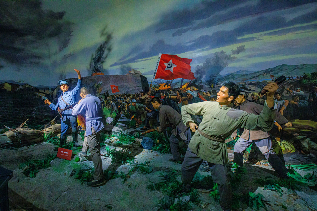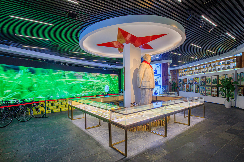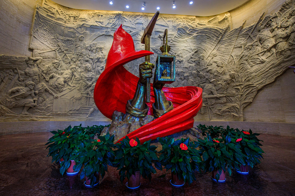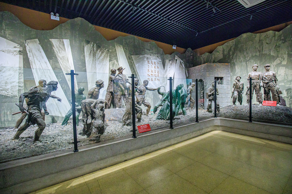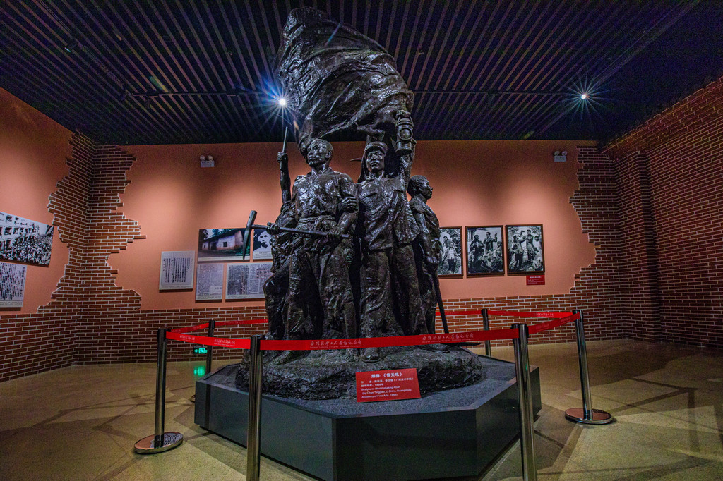 (六)、秋收起义与武装隔离。 除了文字图片和实物外,还有“矿工的苦难”,“大罢工”,“工农联合会”,“去井冈山”等大型雕塑。