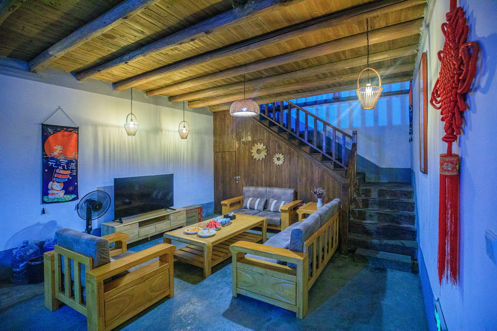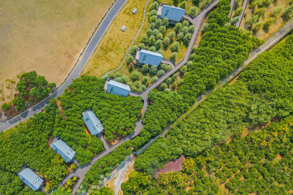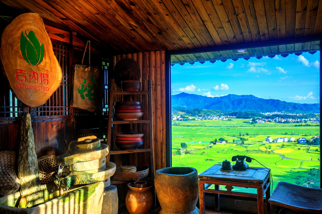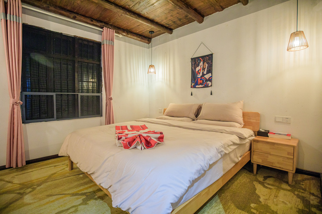 同时,酒店还移栽了樟树、早园竹、石柚、金桂、银杏等树木点缀着院落,使得整个桃园山居一年四季都绿意盎然,颇具年代感。