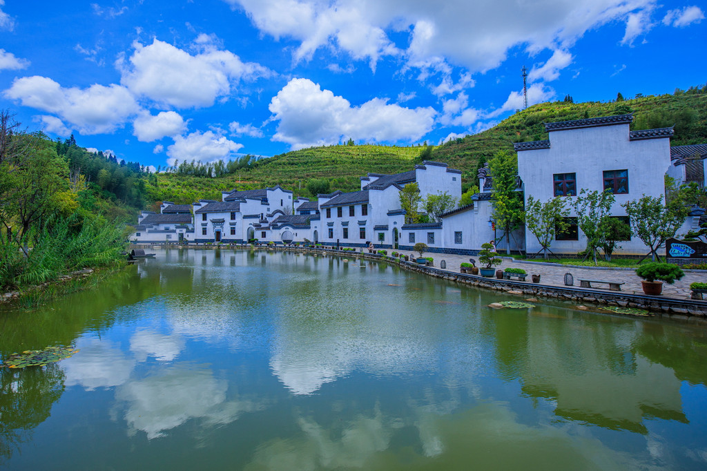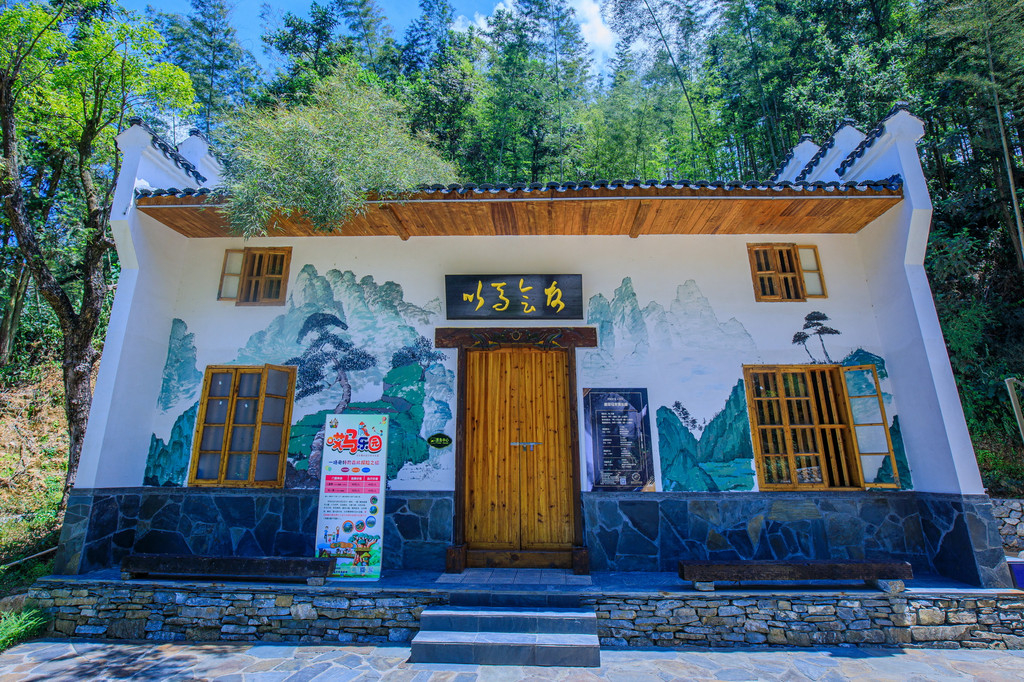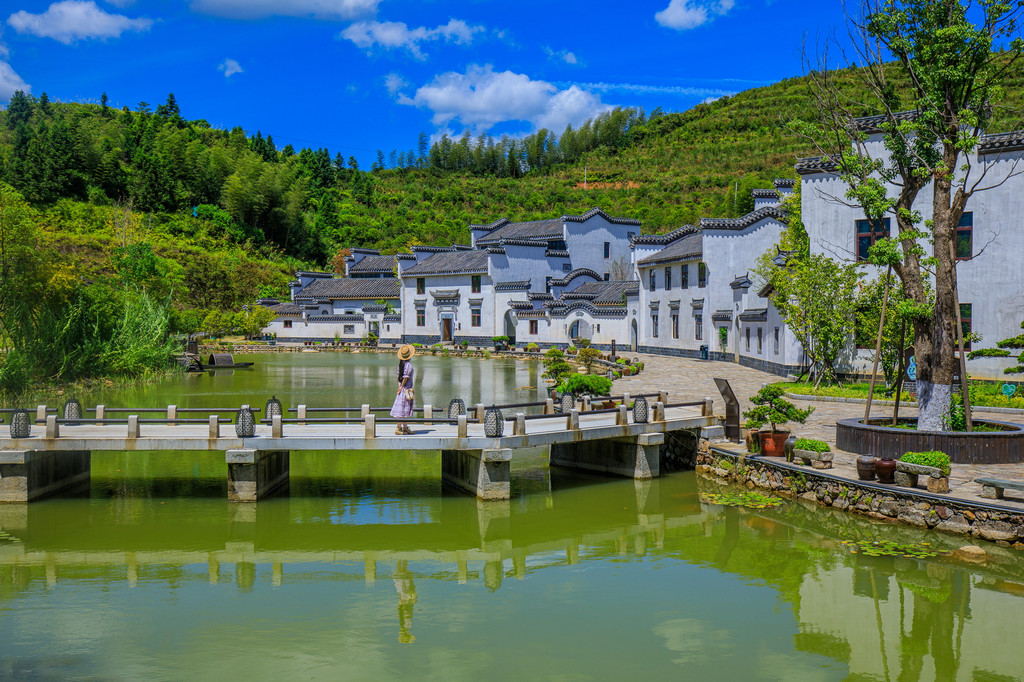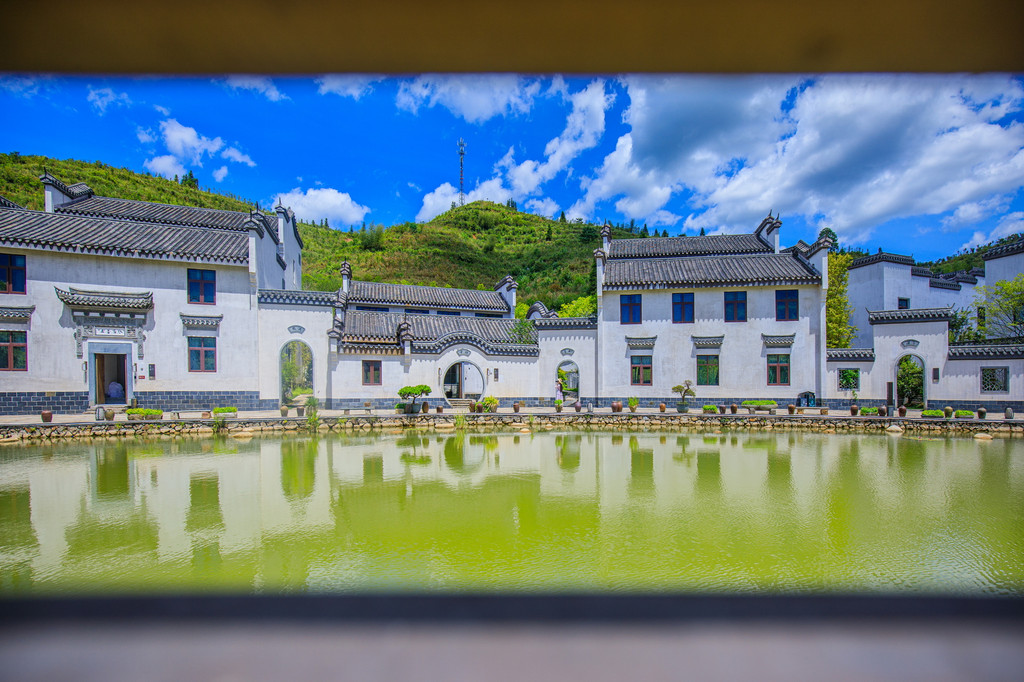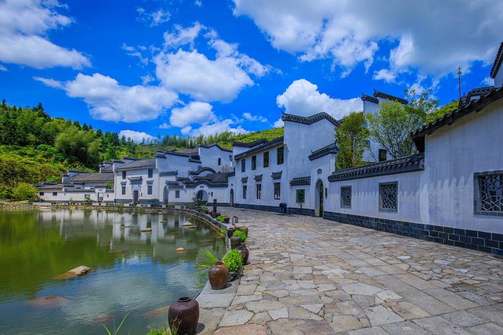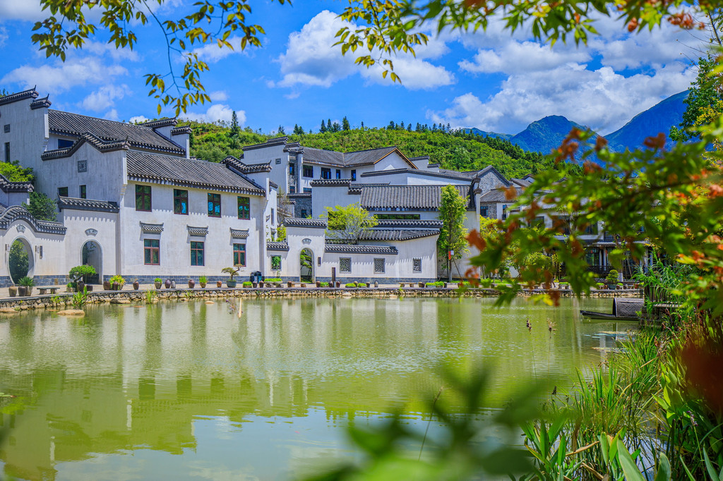 酒店由24栋仿古建筑群组成,每栋别墅都有它独特的命名及释义。建筑采用仿古的干栏式穿斗木结构,结合粉妆、黛瓦、马头墙、木窗、木篱,因地制宜、依山傍水、错落有致,有聚有散而建,形成了“家、院、村”的传统赣派建筑形态。