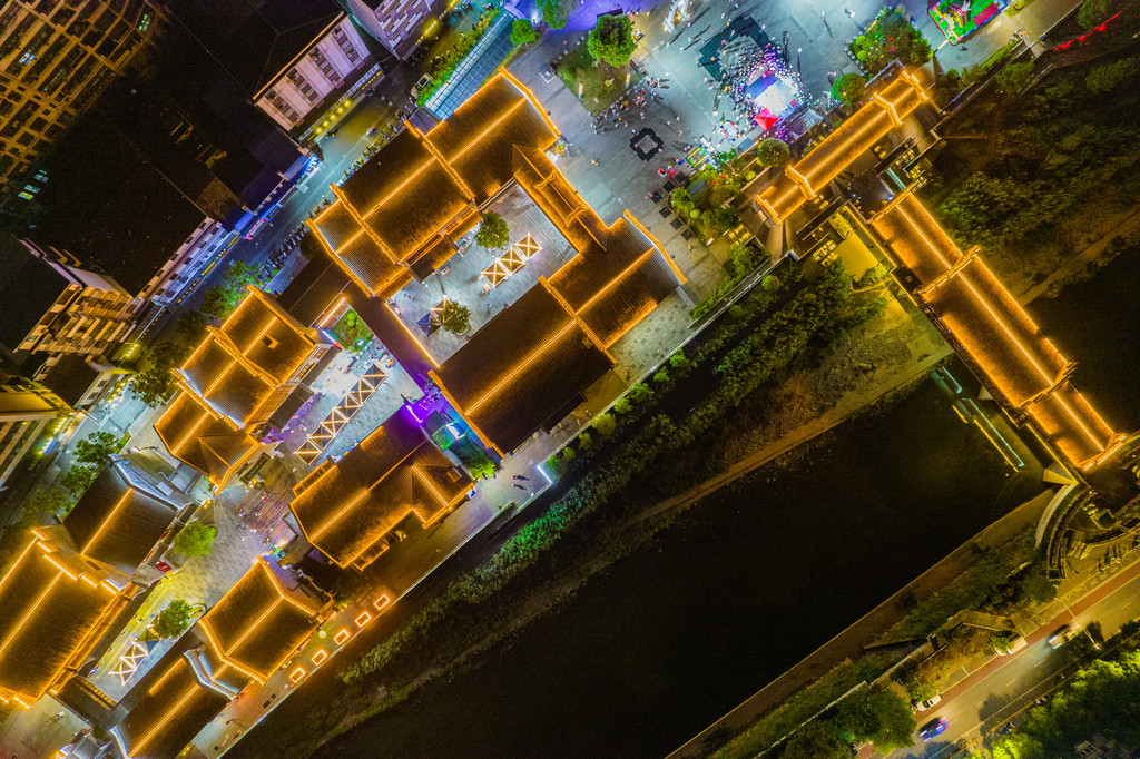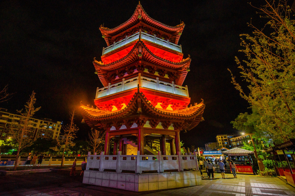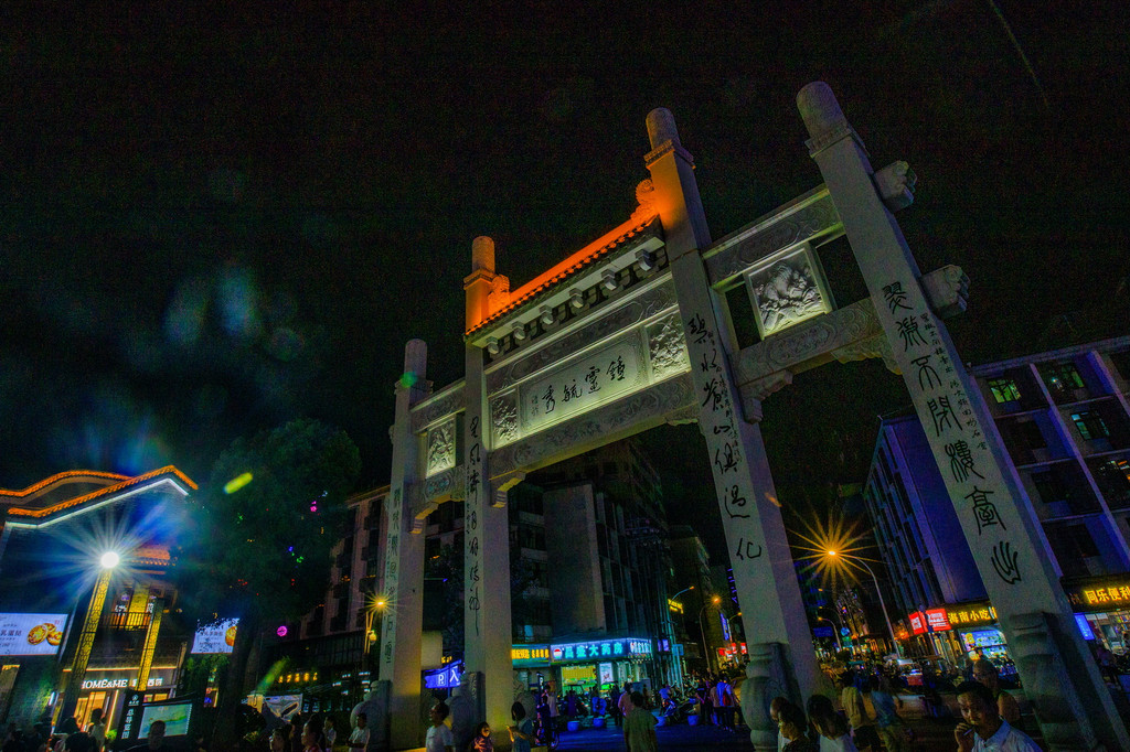 见证萍乡城墙的"禹门"也复建了,还在萍水河上建了座能遮风挡雨的"达秀桥"。到了晚上,满街上霓虹闪烁,灯火辉煌,把萍水河映得水波明亮,色彩耀眼。街上更是人流如织,有休闲的,有跳舞的、有下象棋的、做直播K歌的、也有做小买卖的、逛街的。