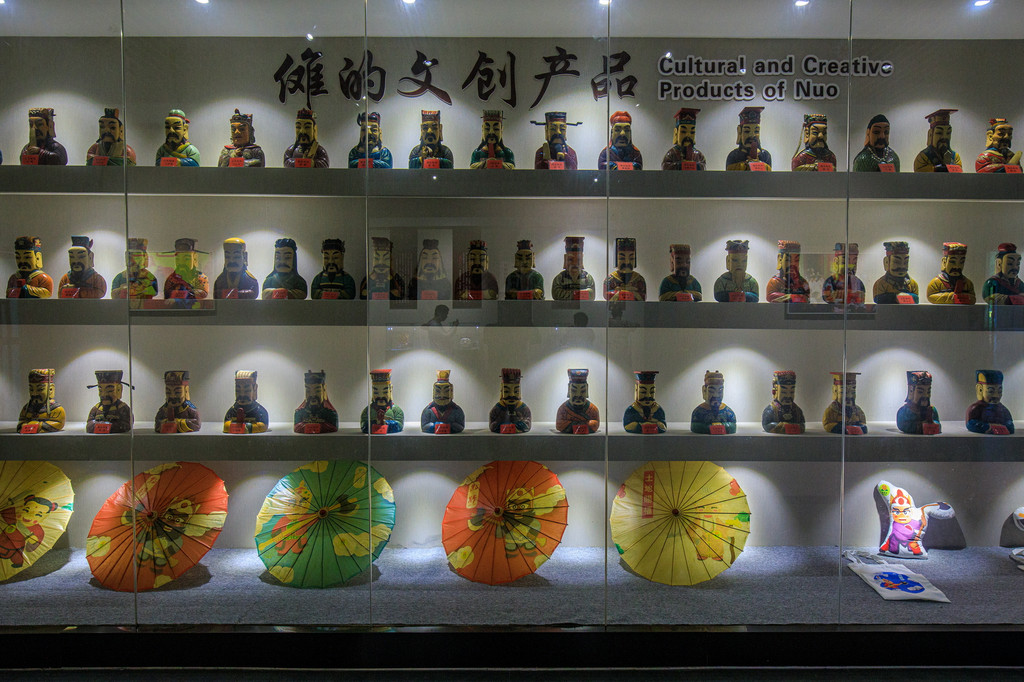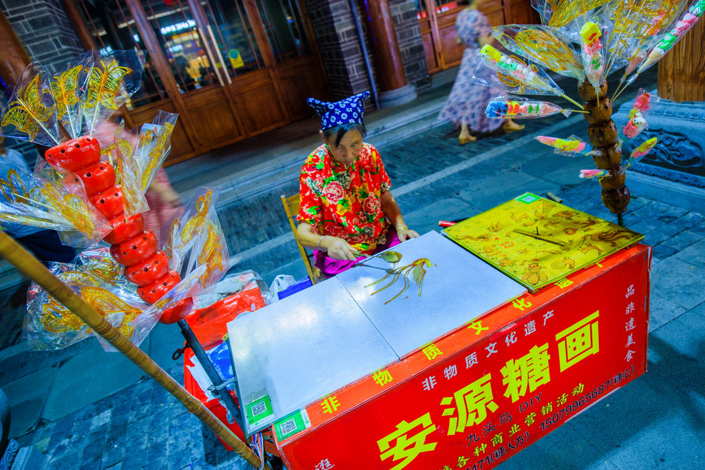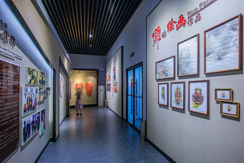 漫步在青砖铺就的街道上,但见店铺林立,到处张灯结彩,成为一道别样的风景。其中,有些店铺还摆放着独具地方文化特色的湘东傩面具、安源面塑、剪纸等作品。