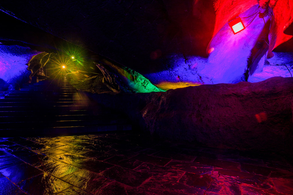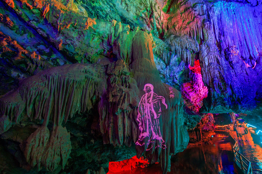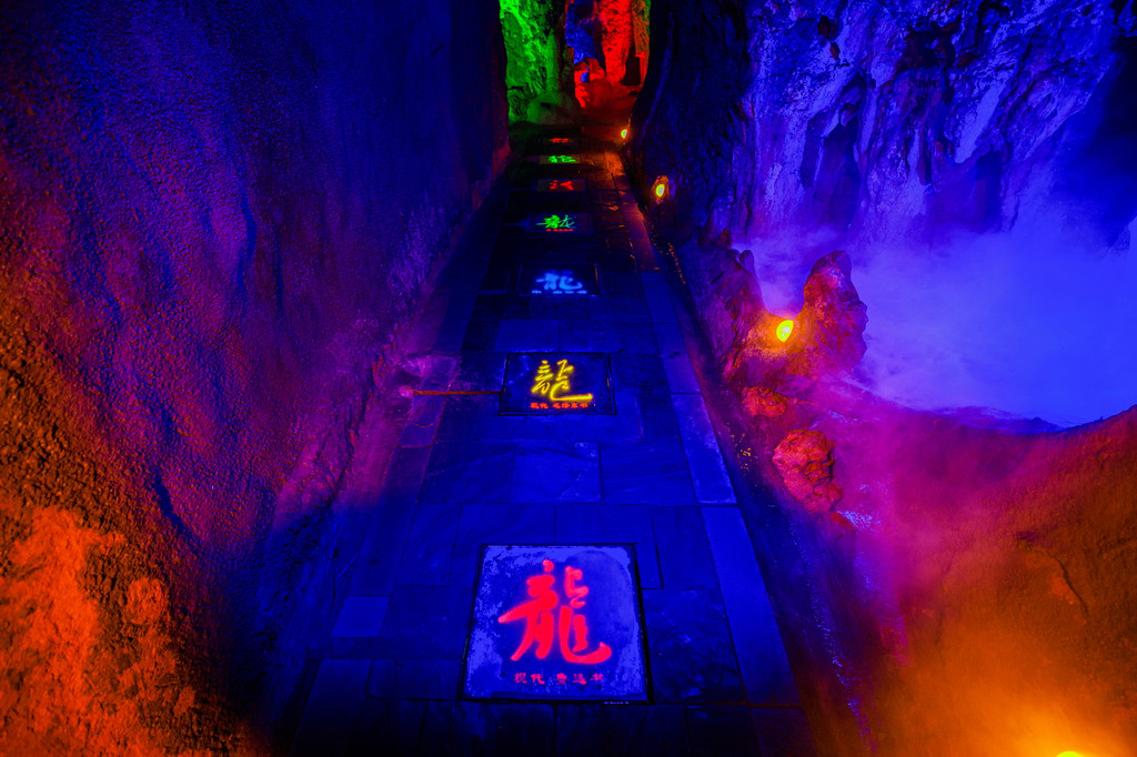 之前说到关于孽龙洞由来的这个故事也被用声光、投影等多种形式相结合的展现在游客眼前,再现了许真君与孽龙在杨岐山生死搏斗的故事,在溶洞中欣赏这种表演可谓是格外的有代入感,整体设计也是相当与时俱进,通俗易懂,有让人耳目一新的感觉。