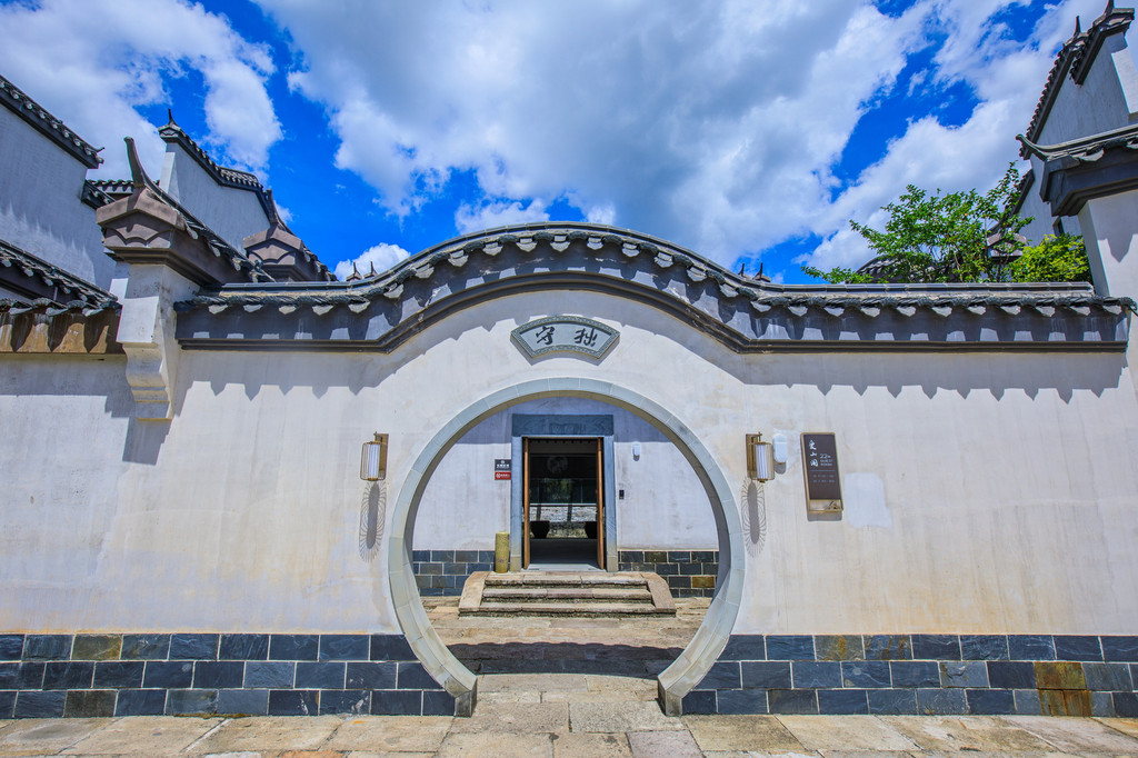 散心途中可在湖边的申明亭小憩一会,轻听风声细语前有绿水青山,后有竹林黛瓦,清风徐徐,展现了“春桃”、“夏柚”、“秋桂”、“冬青竹”的四季美景。