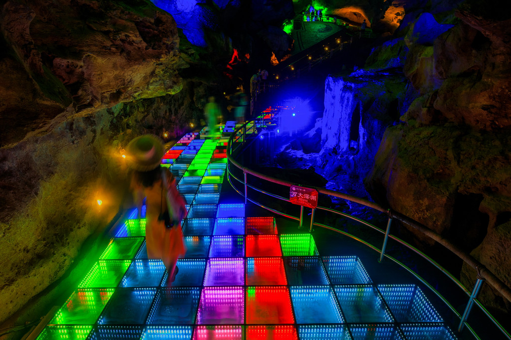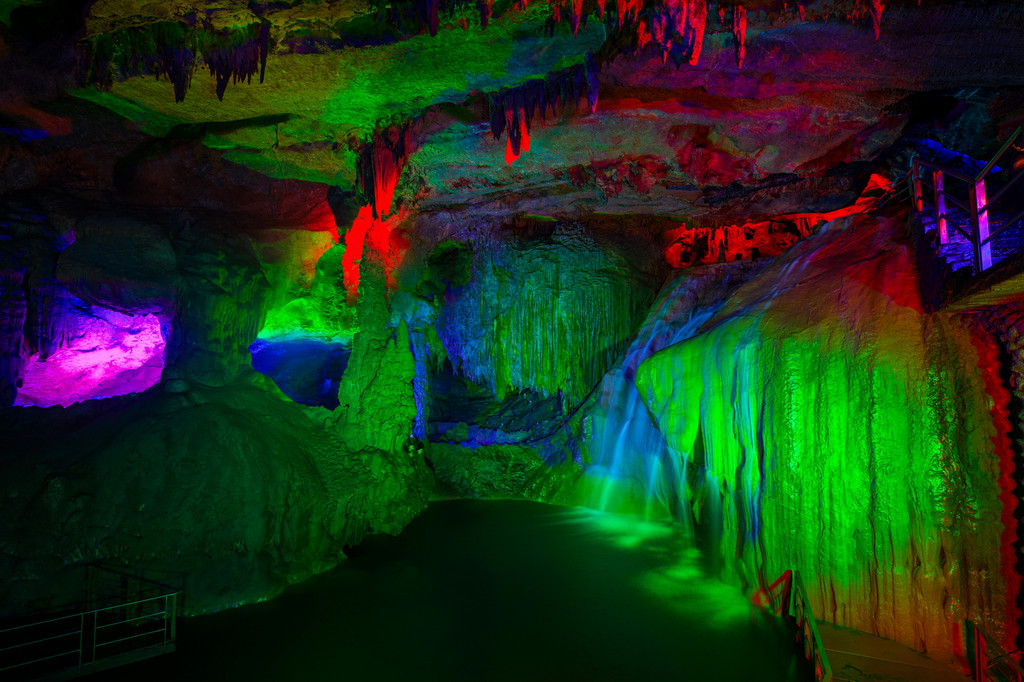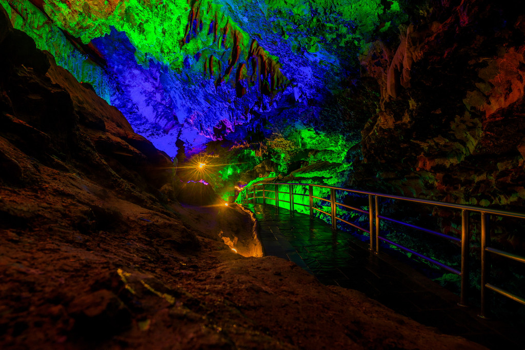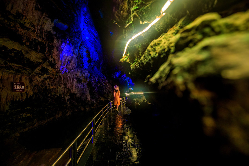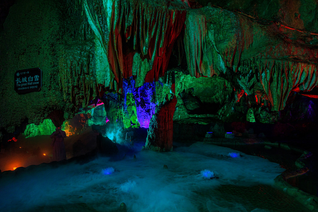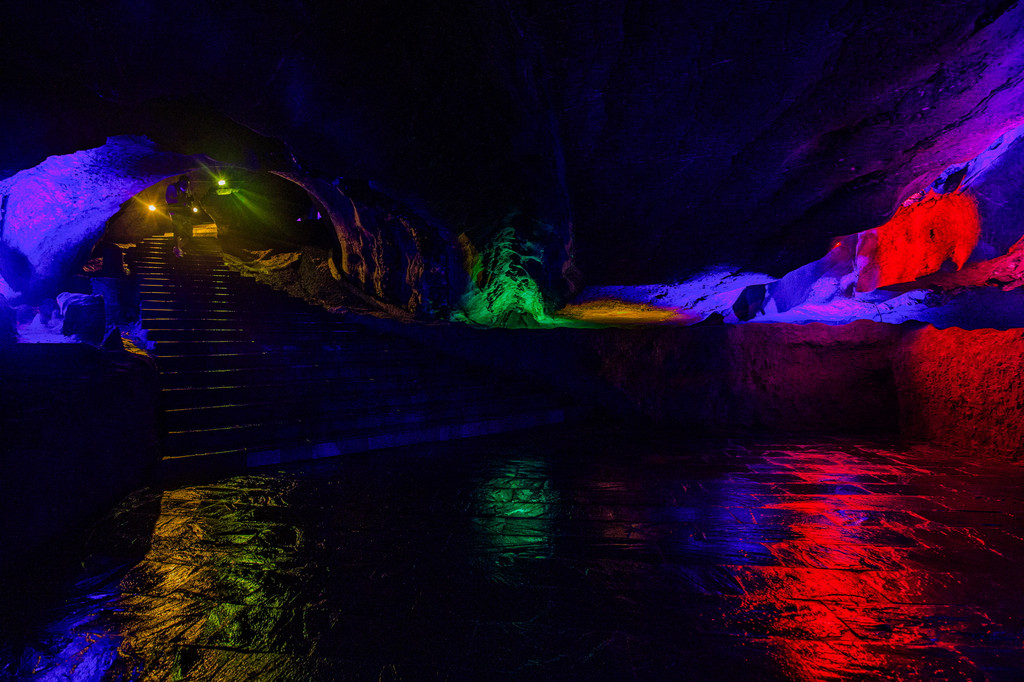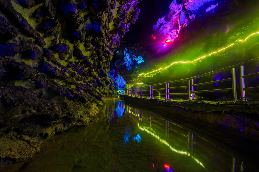 孽龙洞最高洞厅高达三十米,可容纳近一千名游客,尽管此时室外温度可能已经达到三十度以上,但是在洞内常年恒温18度冬暖夏凉。漫步其间,兼静赏洞观之妙,赋形象思维之乐,是不可多见的“岩溶地质的博物馆”。