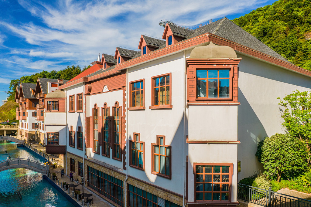 坐落在独具欧式风情的凯光新天地生态旅游区内,引入欧洲乡村风情,坐拥度假区内山水景致,形成了五颜六色的欧洲风情建筑耸立在湖畔之上,环境优美。