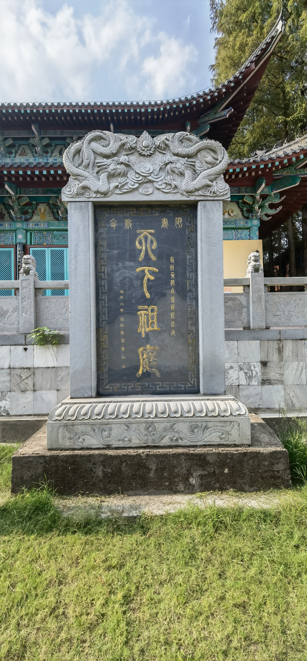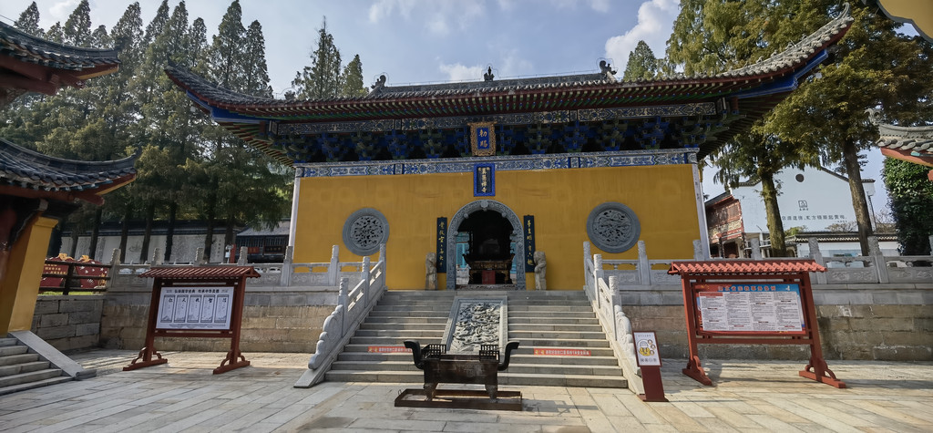 宋英宗题“天下祖庭”,碑后即是重檐歇山式的大雄宝殿。