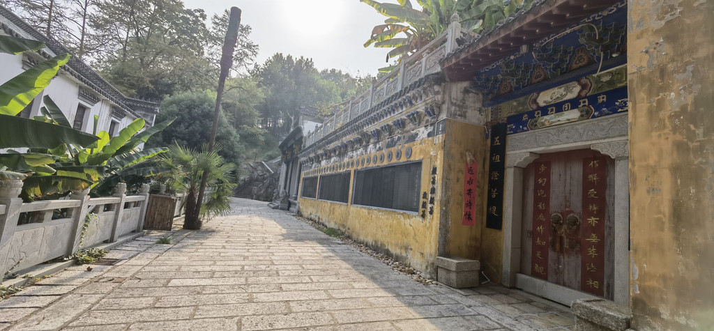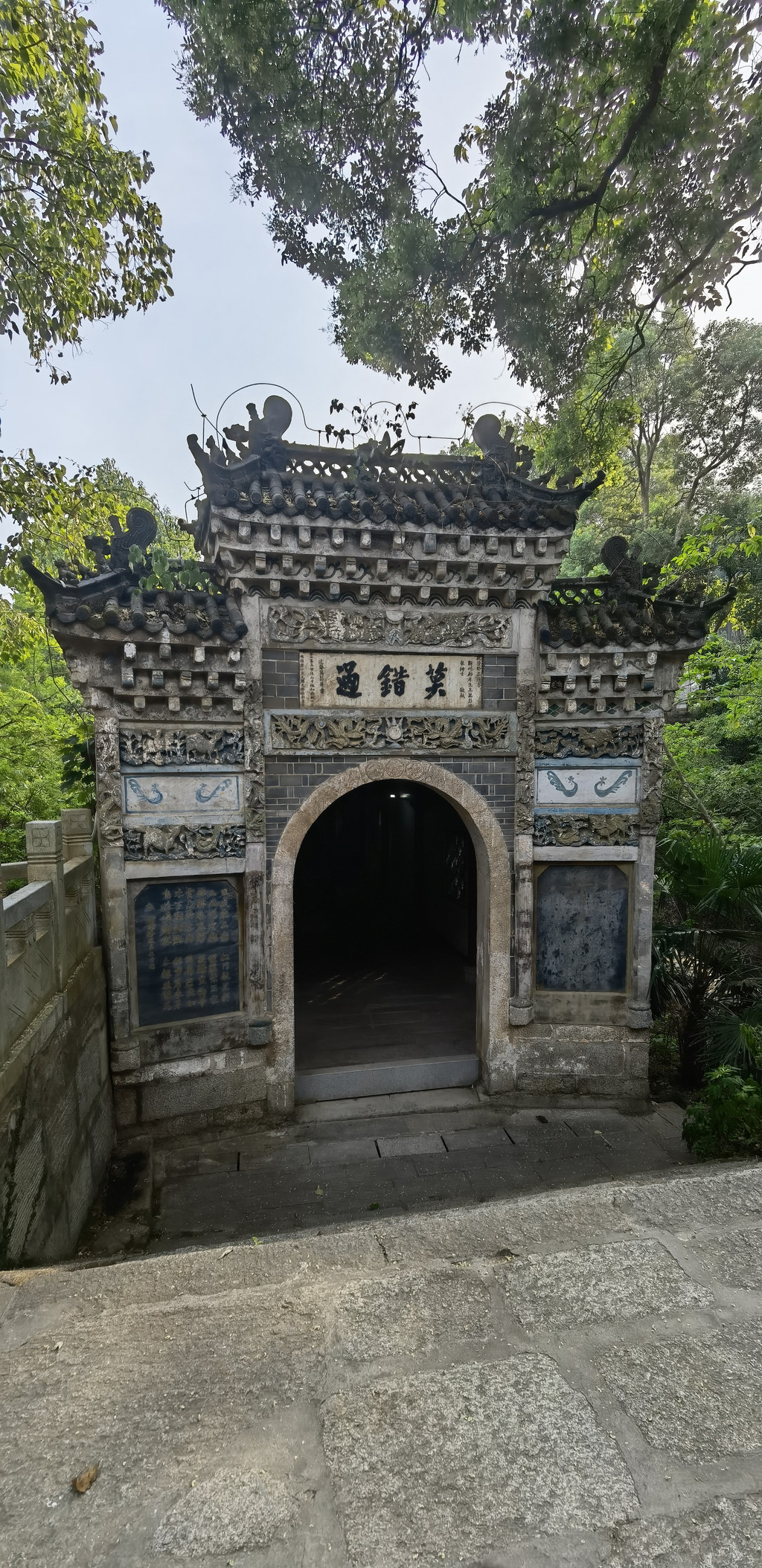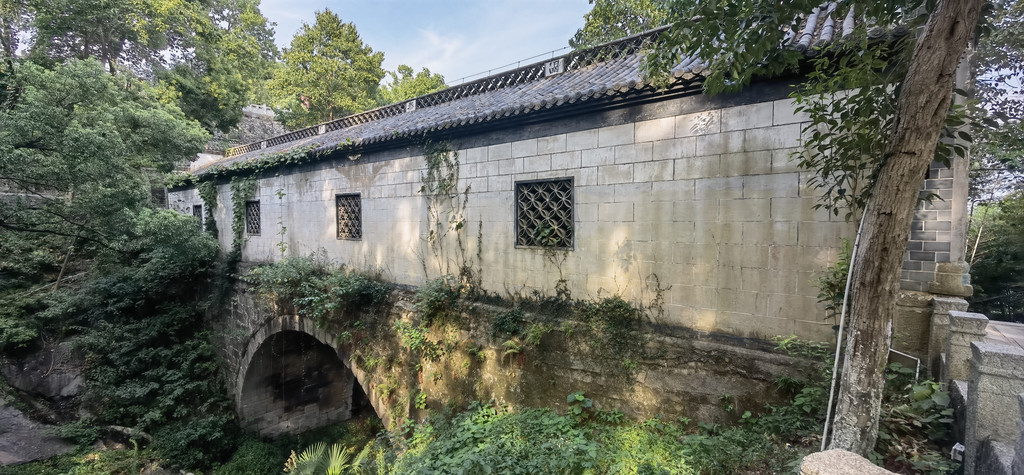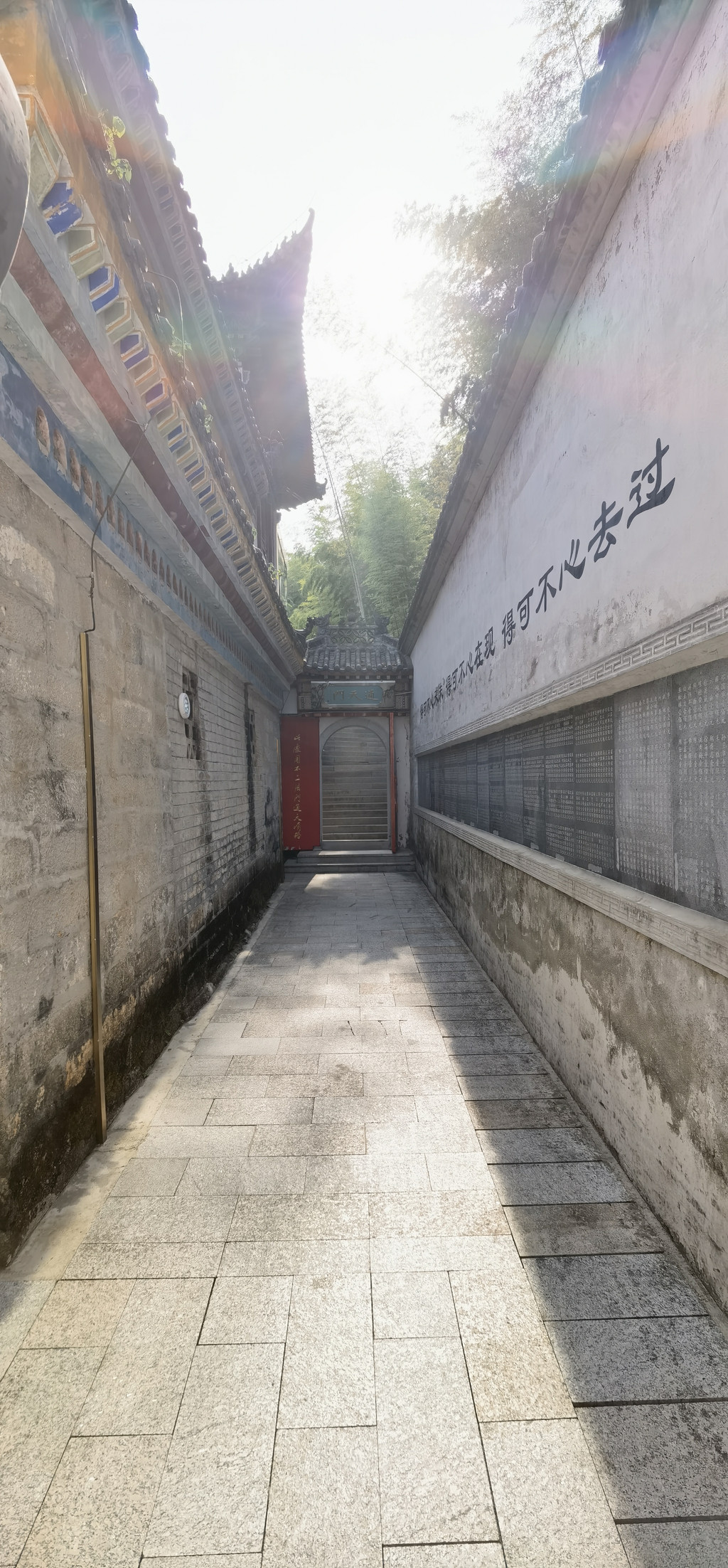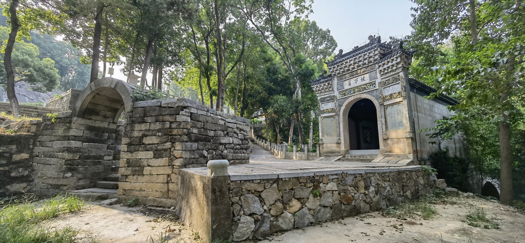 原来这里是东山古道,过去上山都是走的这条道。古道上有唐代山门和飞虹桥,门庄重,桥典雅。