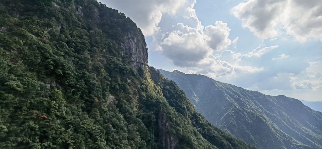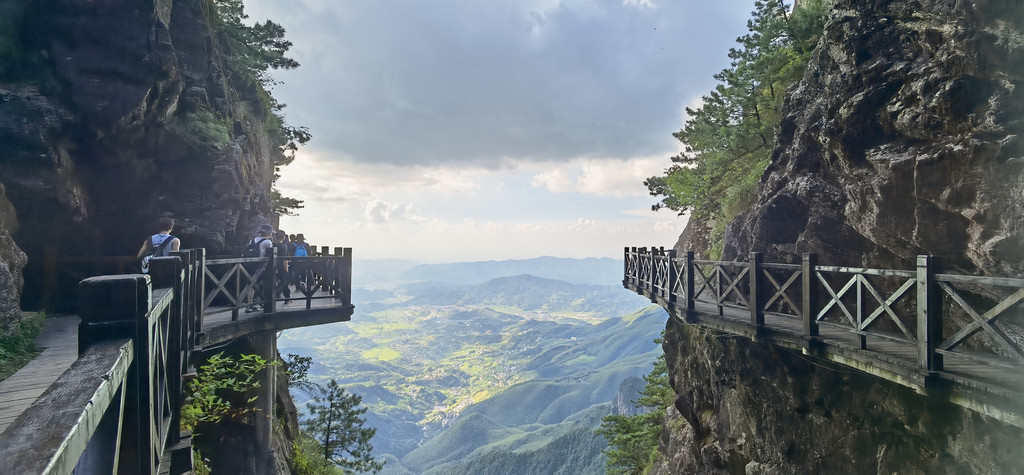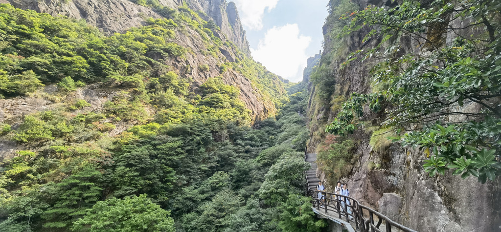 栈道绕过一个山凹处,这样拍出来感觉不一样,站在两侧,似伸手可接。