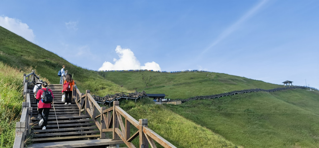 天高气爽,云层显低,到处可见绵延无际的高山草甸,也称云中草原。
