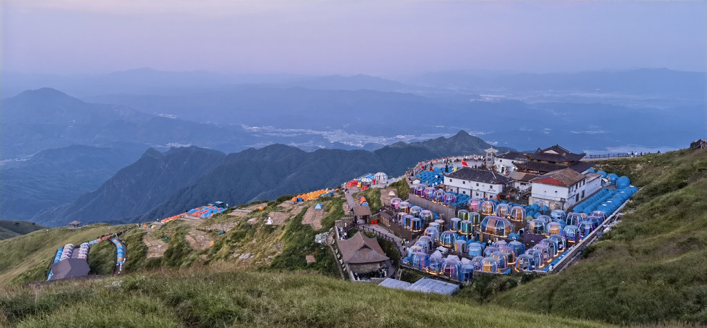 左侧可见固定出租的帐篷,现在的武功山每年都会举办国际帐篷节。