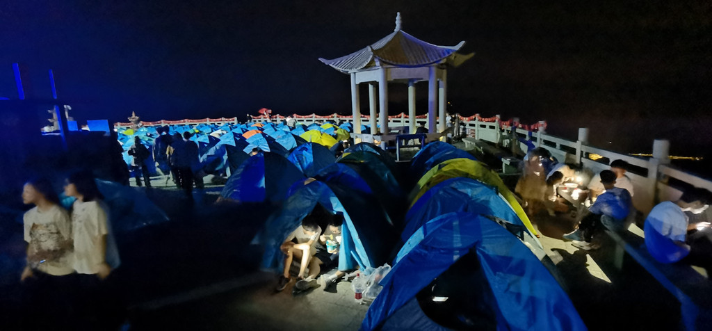 夜幕降临,不少人已进帐篷休息,也有人在到处闲逛,比如我。