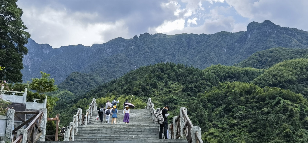 上到山巅,浑身是汗,山上平台挤满了游客。道兄安排我在他们专用的沐浴间洗澡更衣。后到大殿内喝茶。