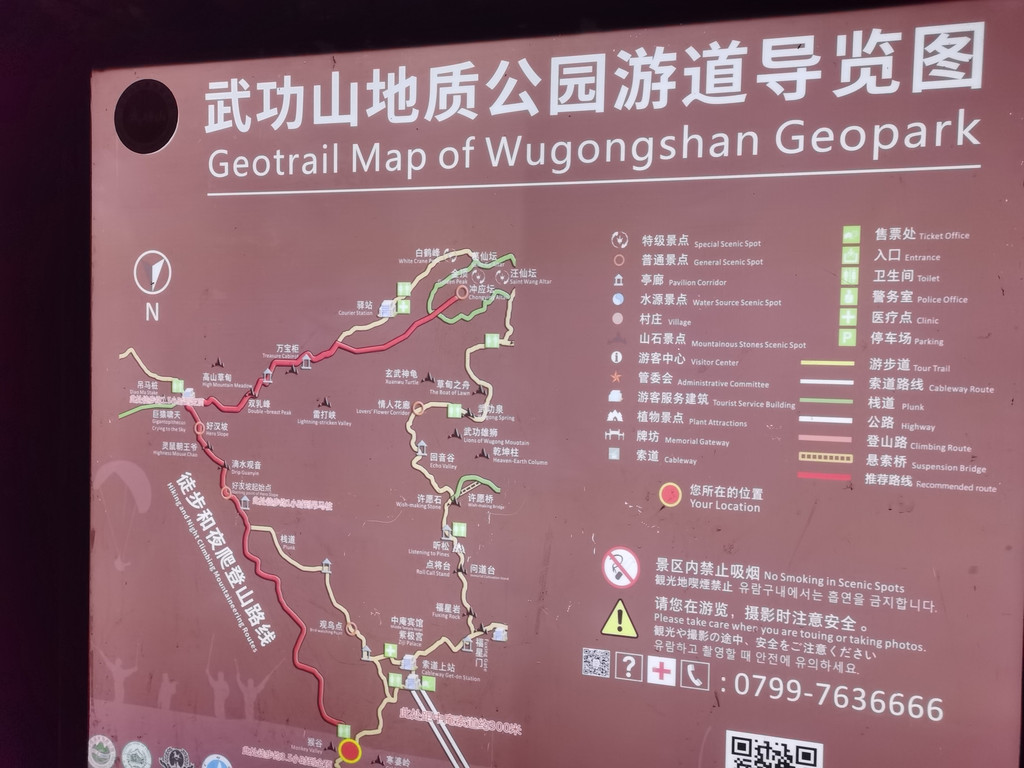 到了武功山停车场就直接开进去了,第一次来也不熟悉,也没有地方去避开停车费;跟停车场保安聊了一会,一方面了解停车收费情况(过夜30元)、景点出入口(金字塔结构)、附近比较实惠的超市(武功山云上花开民宿酒店大堂旁边有一个超市,零食跟家门口消费一样有面包,士力架,登山棍;黄瓜、水果贵点)、饭店消费价格(山脚下的饭店都不贵)