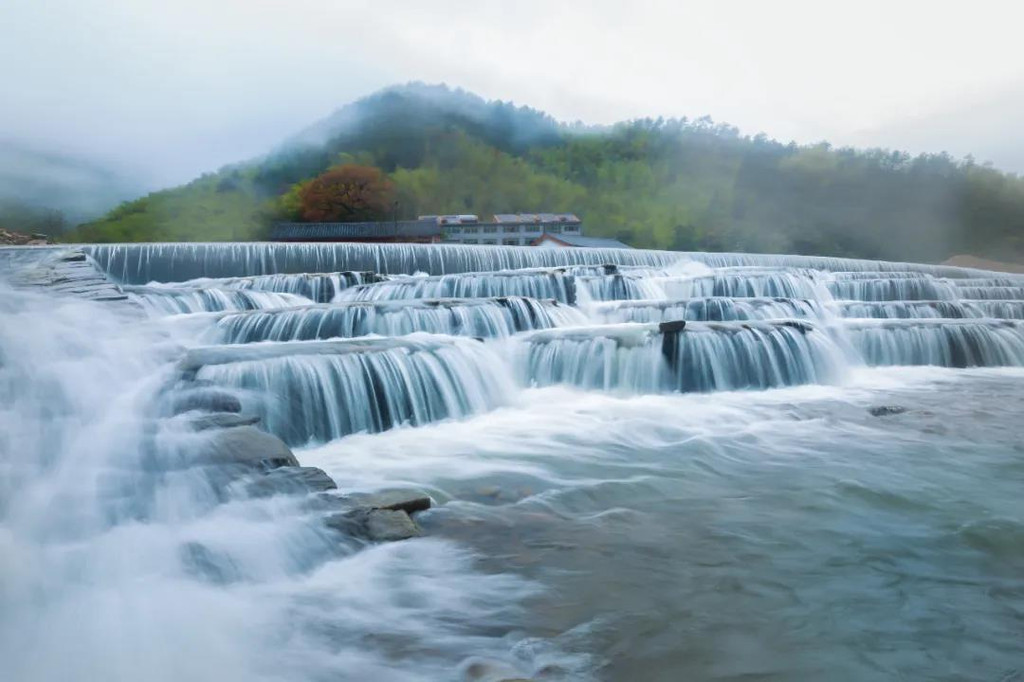 淌过层层叠叠飞泻而下的水口溪瀑;