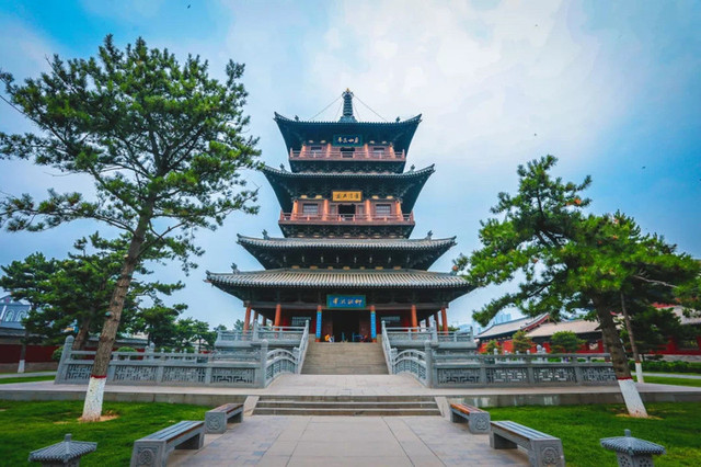 收拾好之后,便迫不及待开始古城游。因为离华严寺较近,先奔华严寺而去。还未进入寺院,远远就被华严寺高耸的宝塔吸引了视线。暖阳下,华严寺木塔茕茕孑立,阳光在宝塔的翘角飞檐上跳跃,透射出穿越历史的光芒。