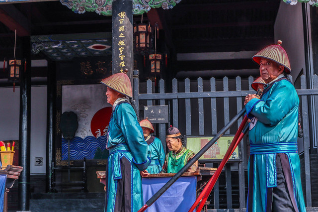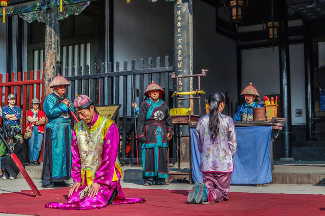 每天下午三点这里都会举行县衙堂审表演,不过整个过程中都使用的现代话,有些话甚至还非常潮,惹得众人纷纷开怀大笑。