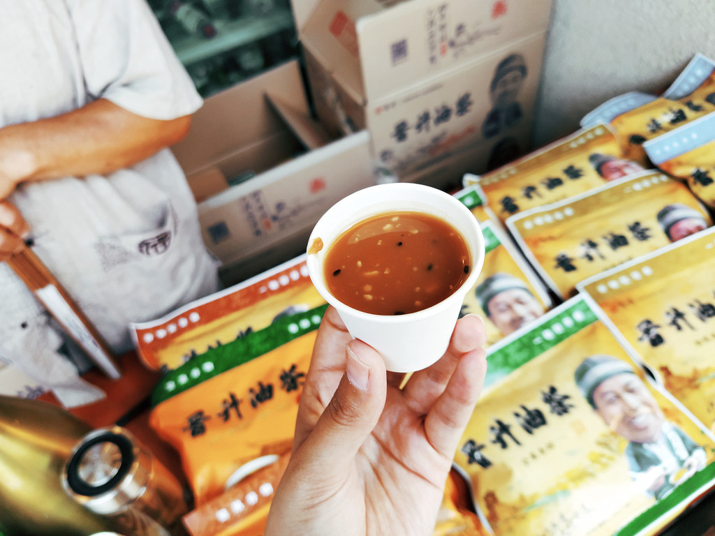 但是太谷饼他吃不下哈哈,留给我们三个咯。而在杜泉涌买的牛肉干他却吃的痛快。