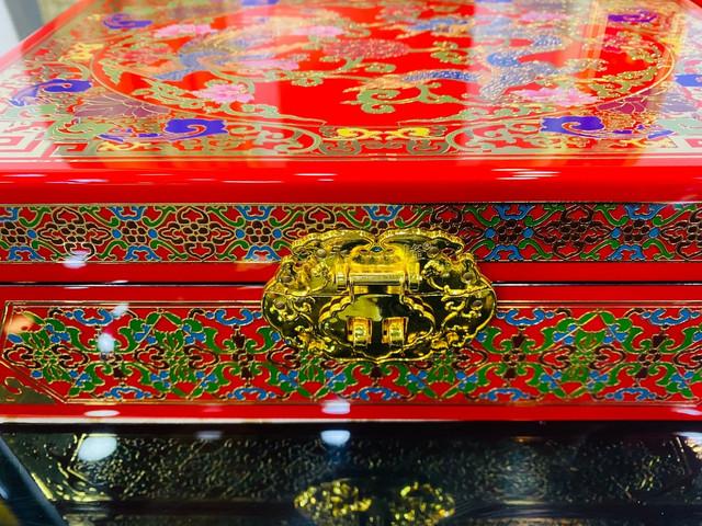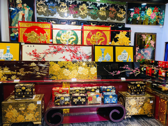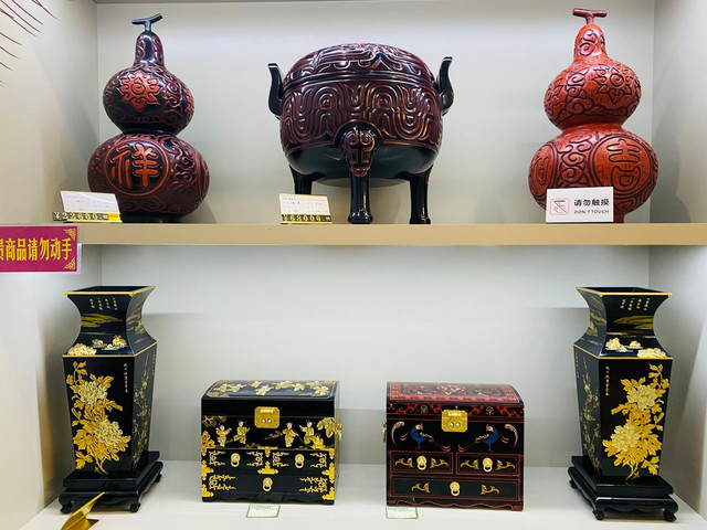 参观地点位于南大街的永隆号,很大的一个店铺,一进店门就有小姐姐很细心的过来接待我们,我们说,我们只是想看一下,小姐姐说,可以呀!我来给你们介绍介绍,琳琅满目的各种各样的漆器,小姐姐给我们讲述着漆器过程,详细介绍了一款我们喜欢的漆器盒,带我们去后面一间房里面,看了看有小姐姐正在制作,正在那边画,看了一会后,小姐姐带我们去了院子的一角,看了一双长达六米长的筷子,记得到时候去摸摸筷子,快快乐乐哦!