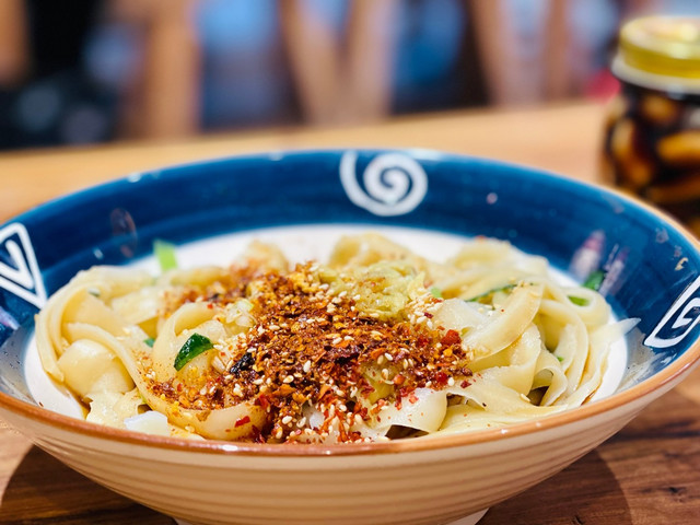 他们家的美食都是古城的特色美食,那个泡泡油糕就很好吃哦!牛肉烤肠炒碗托,肥肠火腿炒碗托、桃花面,吃过的这几样都很不错,哦!对了,可以尝一尝平遥油茶哦!