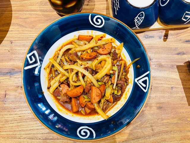 在我们行走在古城的大街小巷中的时候,肚子饿啦,那当然是吃古城里面的特色美食店了,走呀走,一家人爆满的店,吸引了我们的注意,在想,那么多人在外面等,这家的饭很好吃吗?冒着想试试的心态,我们忍着肚子饿排了好久的队,终于轮到我们啦,感觉再这样下去,人都饿傻咯!