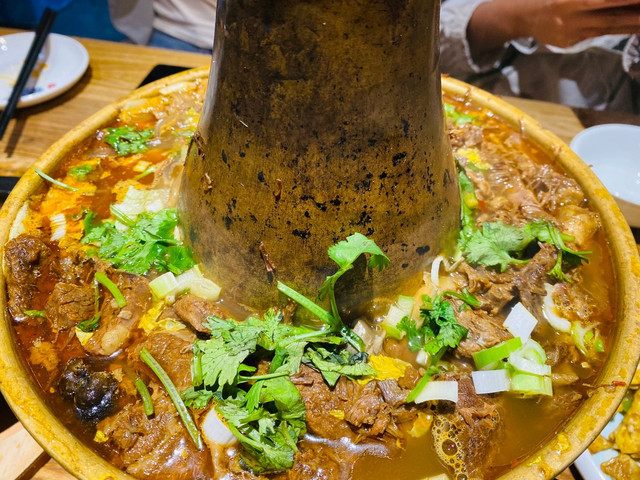 进来的时候看见每桌上面都有那个黄色的糕,点餐的时候特意问了阿姨,阿姨说那是沁州黄米凉糕,也是其中一个招牌,毫不犹豫的就点了一个糕,这天气特别想吃一个火锅,又点了一个牛肉铜火锅、八宝栲栳栳、老陈醋焖牛肉,完美!那道菜也没有踩雷哦!