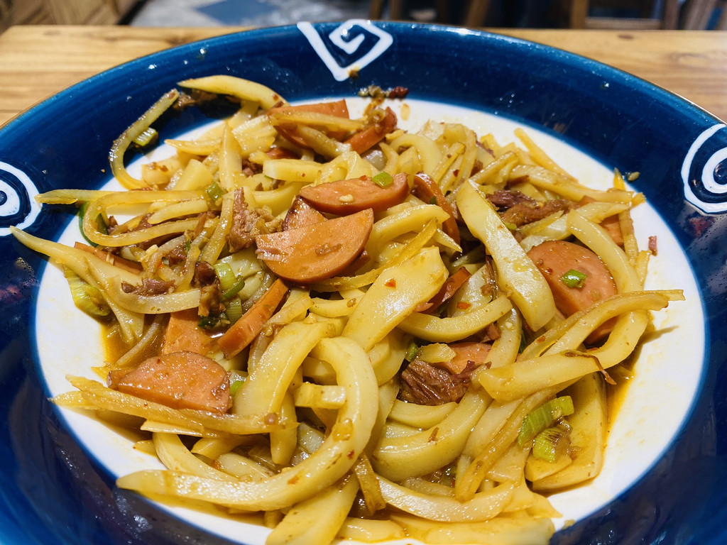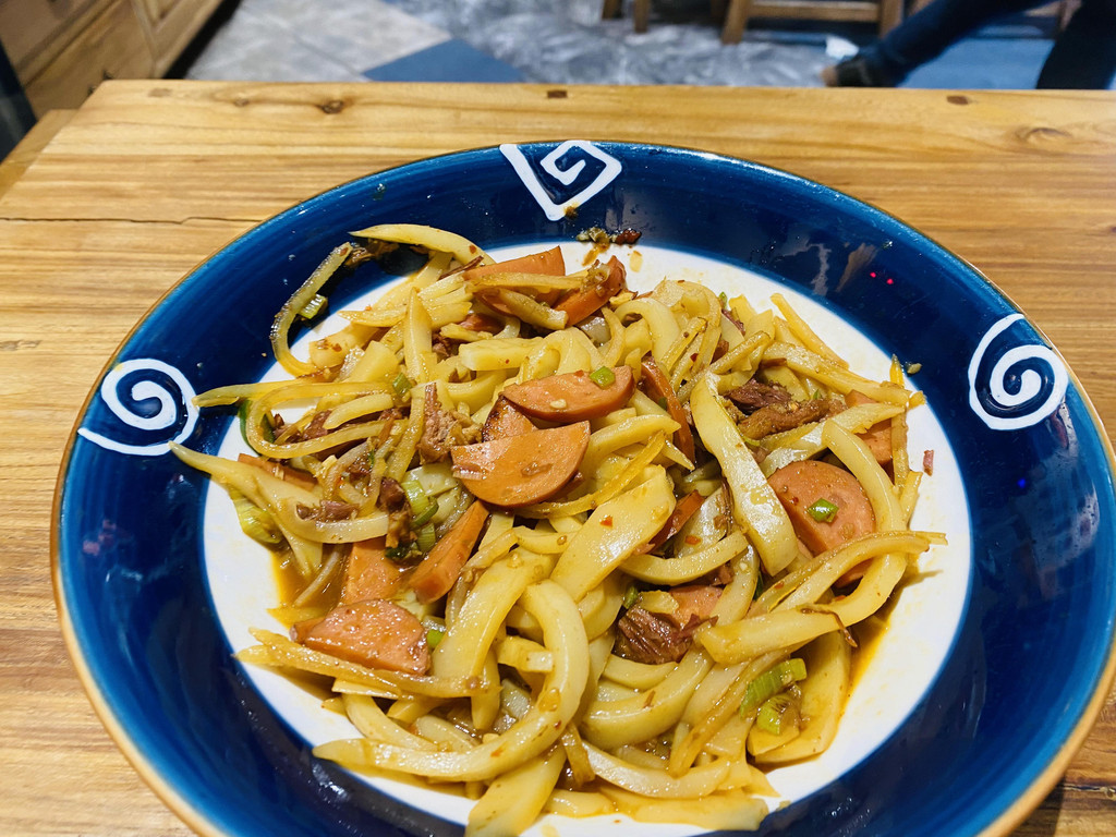 他家的炒碗托有好几种,可以将你喜欢的食材和碗托炒在一起,而且味道还相当的不错,最爱,牛肉烤肠炒碗托,在即将出锅的时候,让师傅撒一把喜欢的麻花,爱了呀!