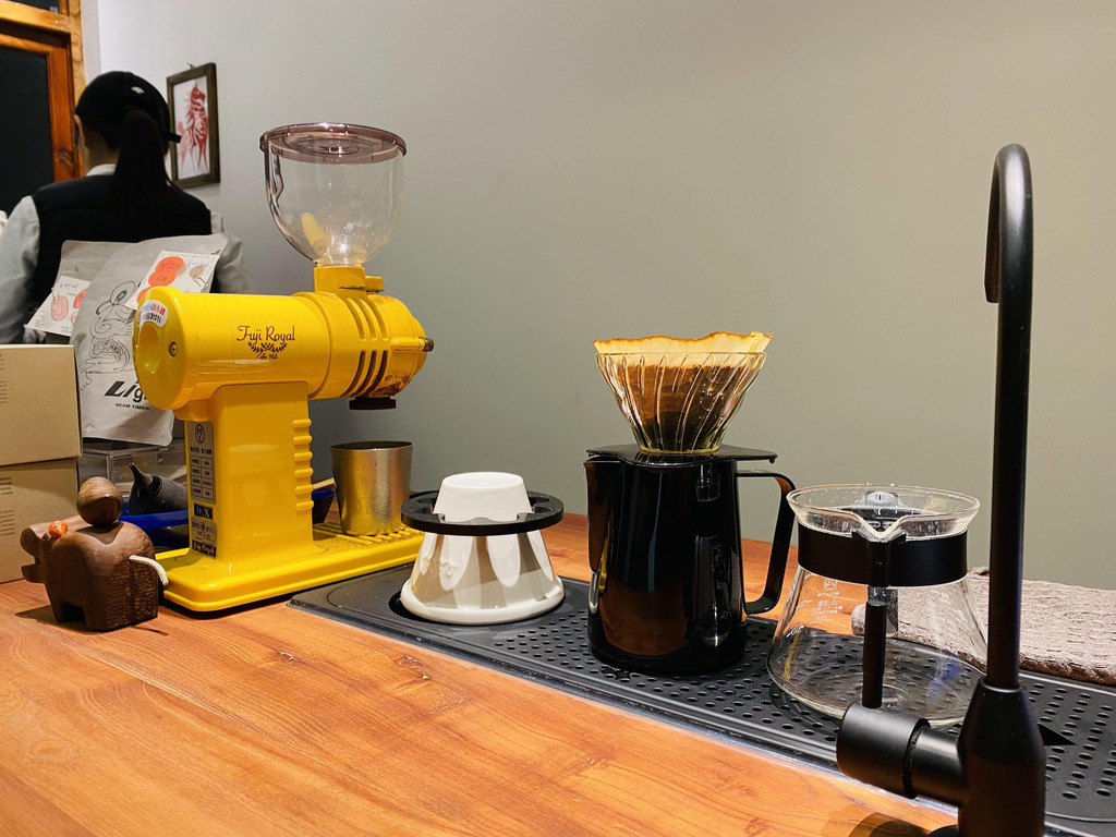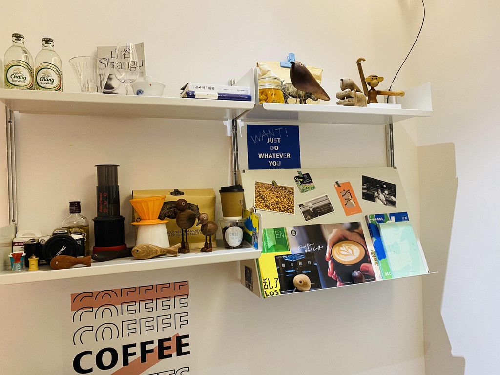 有店名而来的诗,有她爱的咖啡机、有黑胶,有各式各样的杯子、有超出片的镜子,有一个可以等待的人,有佛系的老板。
