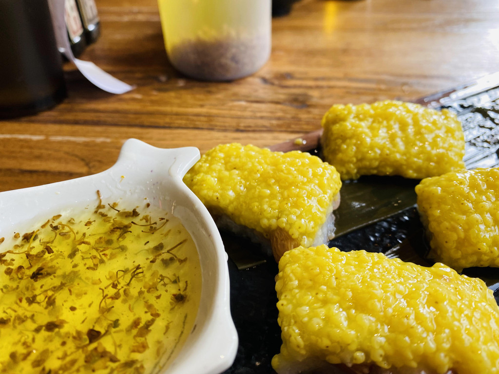 平遥古城一家必打卡的美食餐厅,沁州黄米凉糕,光看颜色就特别的有食欲,软软糯糯的凉糕,蘸上桂花蜜,吃起来甜甜的,简直是爽歪歪,关键是甜而不腻。