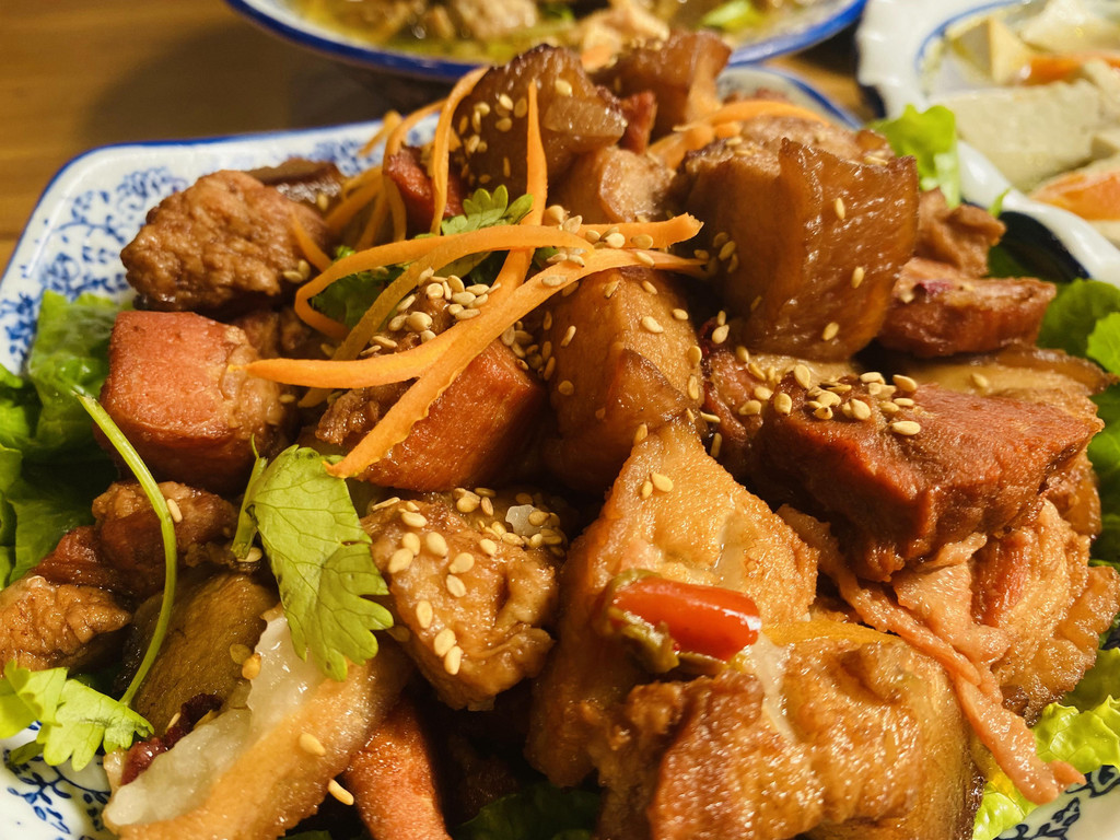 有肉、有配菜,还有鸡蛋,用桃花坞形容都不为过!