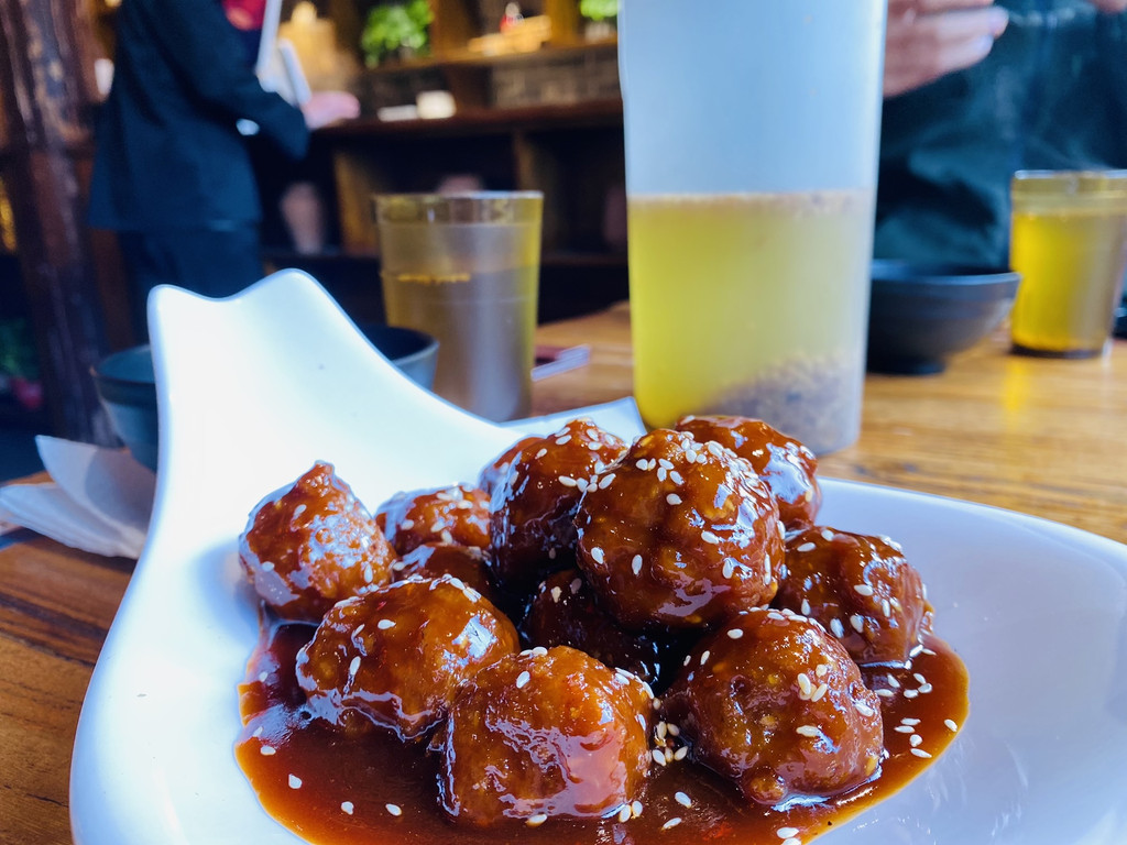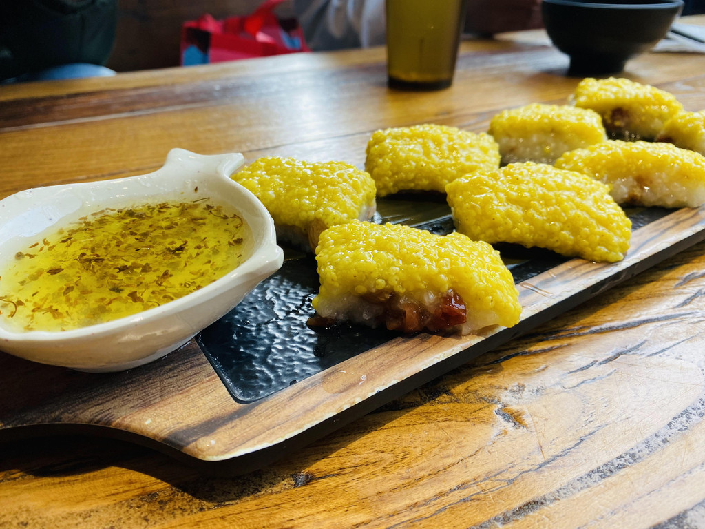 来洪武记饭店,还有一道必点的,那当然就是沁州黄米凉糕啦!软软糯糯的,蘸上店里搭配的桂花蜜,一股淡淡的香。