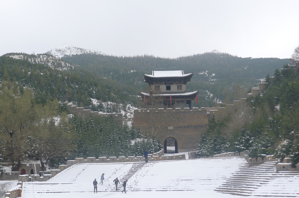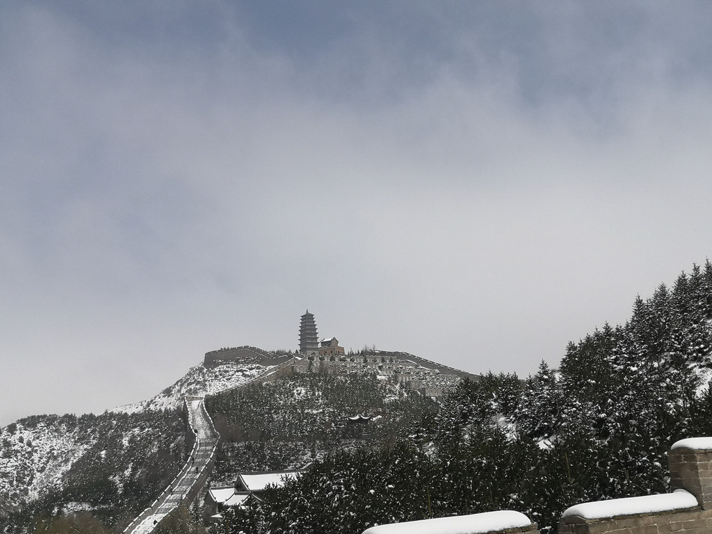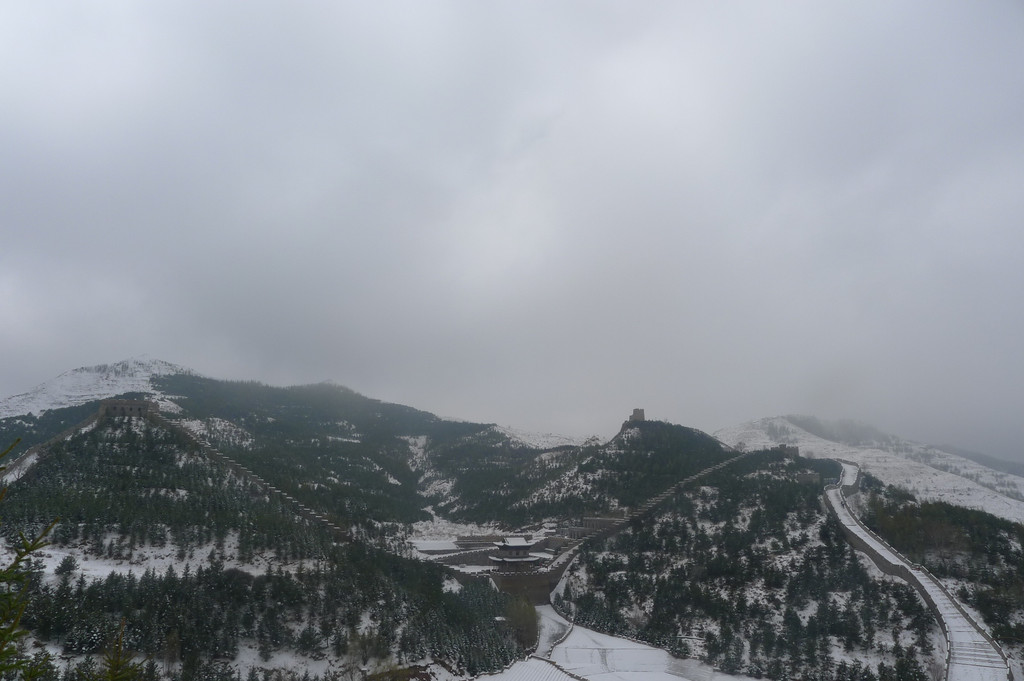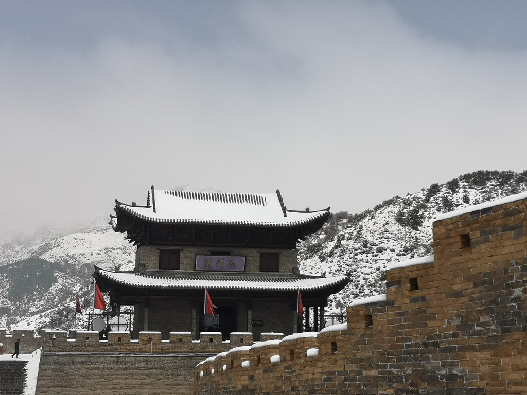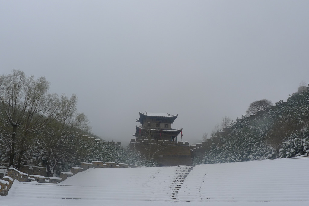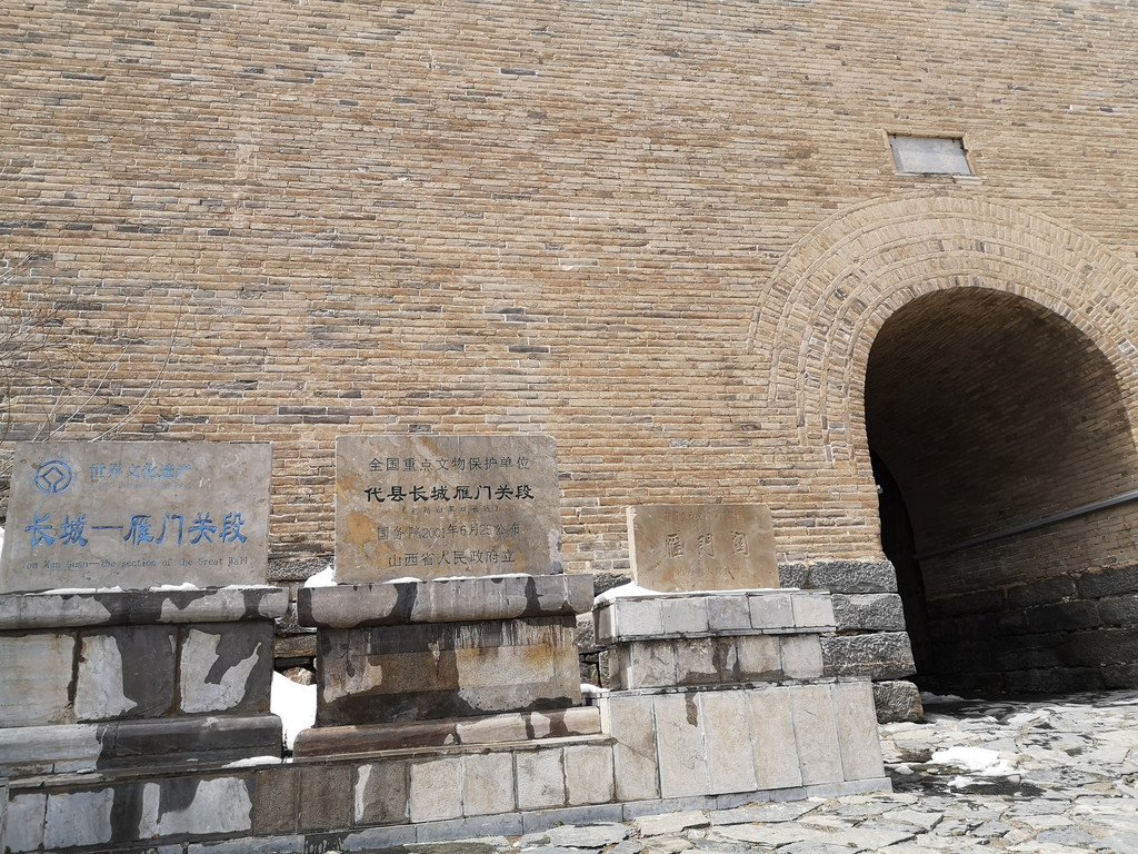 因为遇到大降温前一天山上下雪,游览当天我们见到古代雄关的雪景。雪覆盖住了雁门关和巍峨长城,我们站在关塞上看着远处绵延不绝的山脉和巍峨长城,仿佛穿越回了古代看到边关战士冬季戍关的场景,心中骤然升起强烈的家国情怀和深深的钦佩之情。雁门关,不愧是中华第一关!