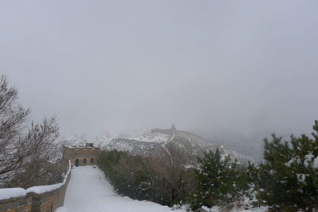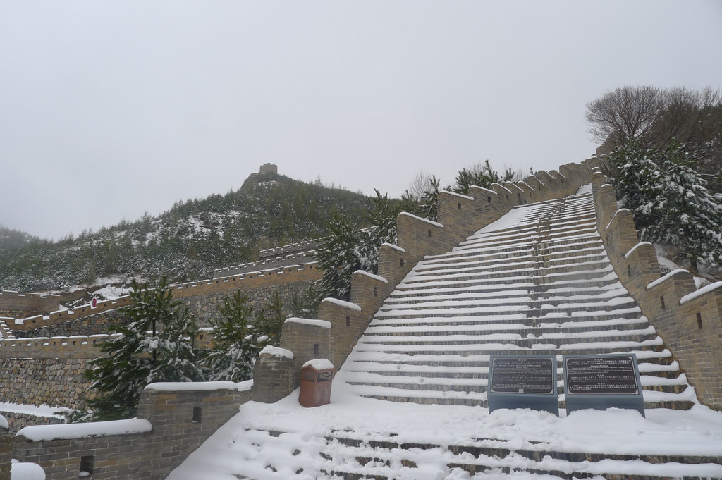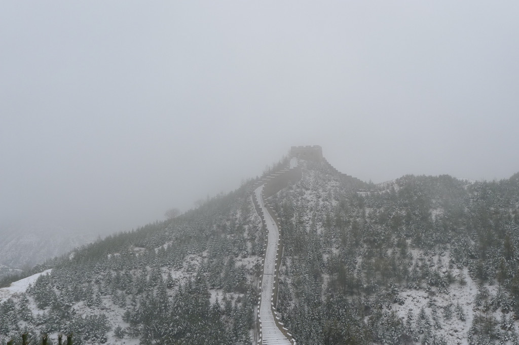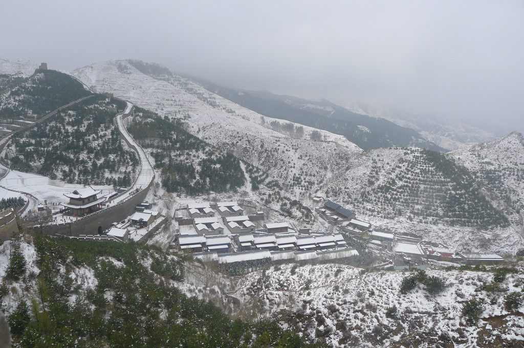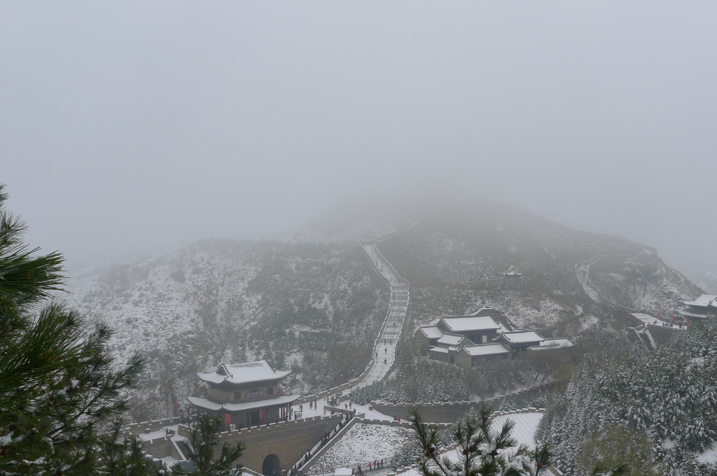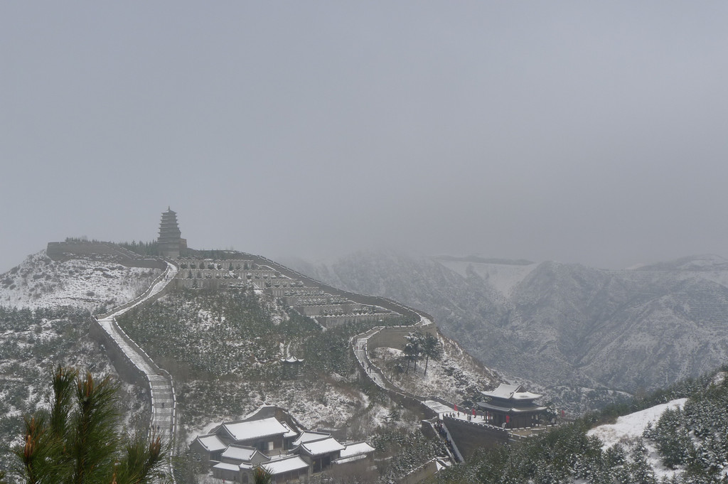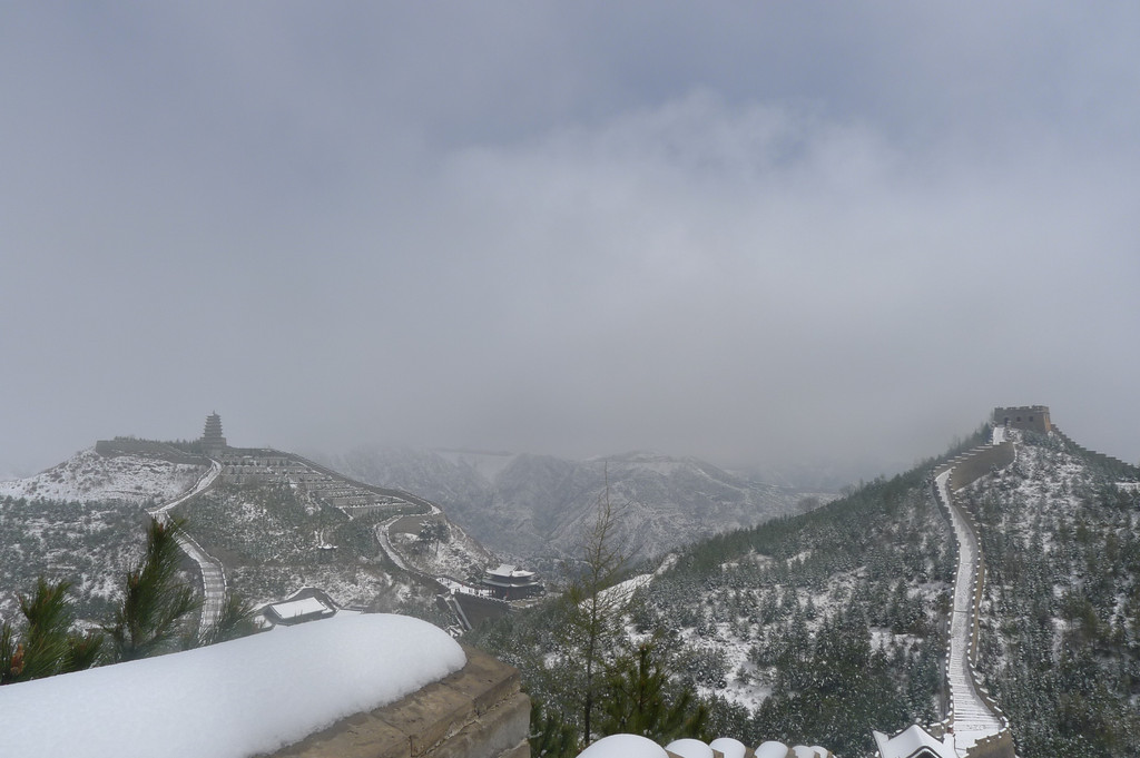 因为遇到大降温前一天山上下雪,游览当天我们见到古代雄关的雪景。雪覆盖住了雁门关和巍峨长城,我们站在关塞上看着远处绵延不绝的山脉和巍峨长城,仿佛穿越回了古代看到边关战士冬季戍关的场景,心中骤然升起强烈的家国情怀和深深的钦佩之情。雁门关,不愧是中华第一关!